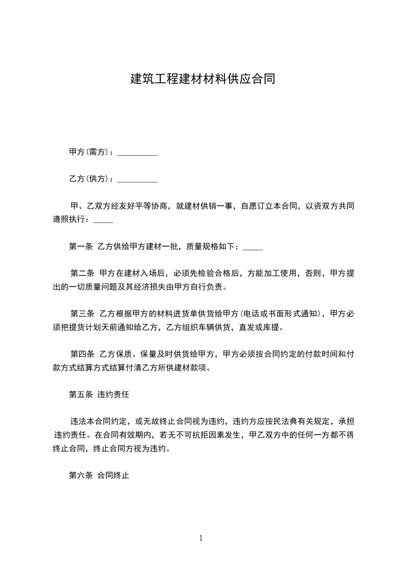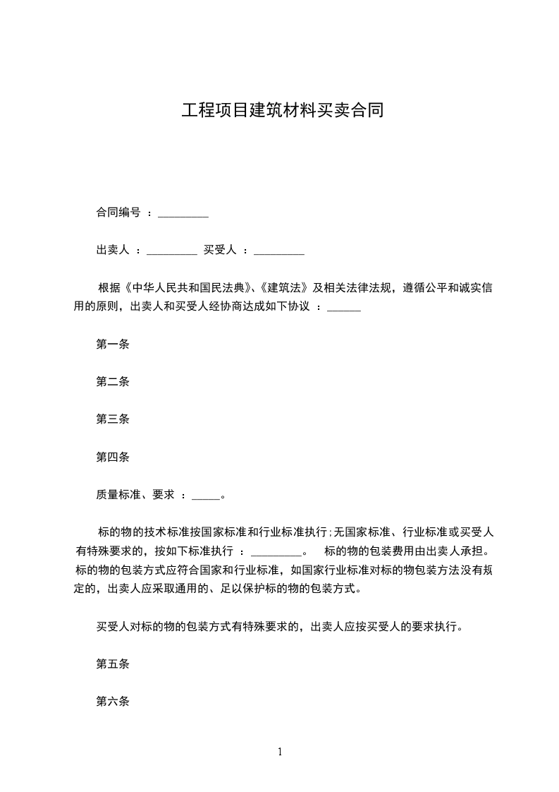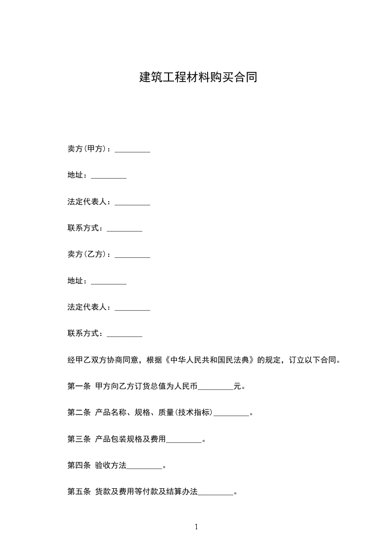 依据《中华人民共和国民法典》和《中华人民共和国建筑法》的有关规定,结合建筑材料生产、销售、使用的具体要求,经协商甲方同意购买乙方的建筑材料一批,为明确甲、乙双方的共同责任,经双方协商一致,签订本合同。