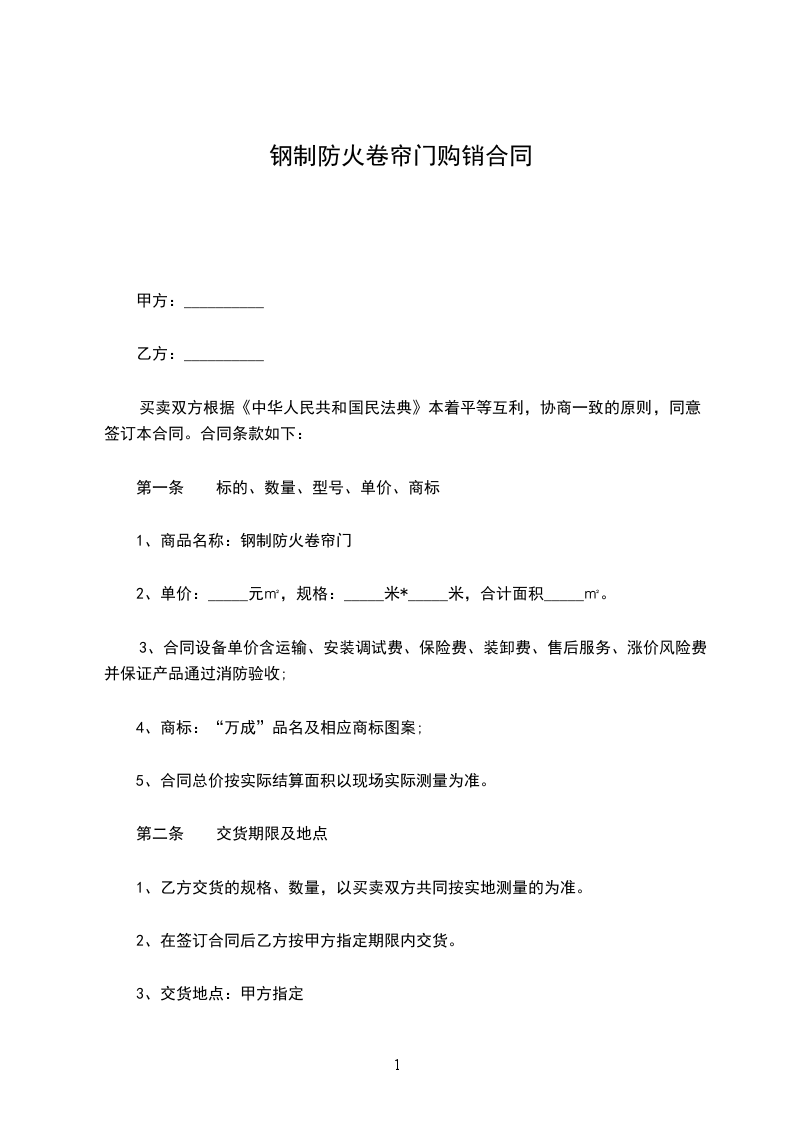 1、商品名称:钢制防火卷帘门