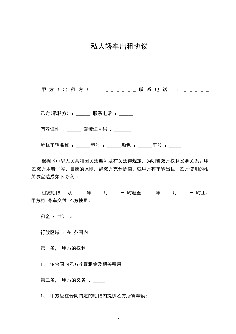 根据《中华人民共和国民法典》及有关法律规定,为明确双方权利义务关系。甲乙双方本着平等、自愿的原则,经双方充分协商,就甲方将车辆出租 乙方使用的相关事宜达成如下协议 :_____