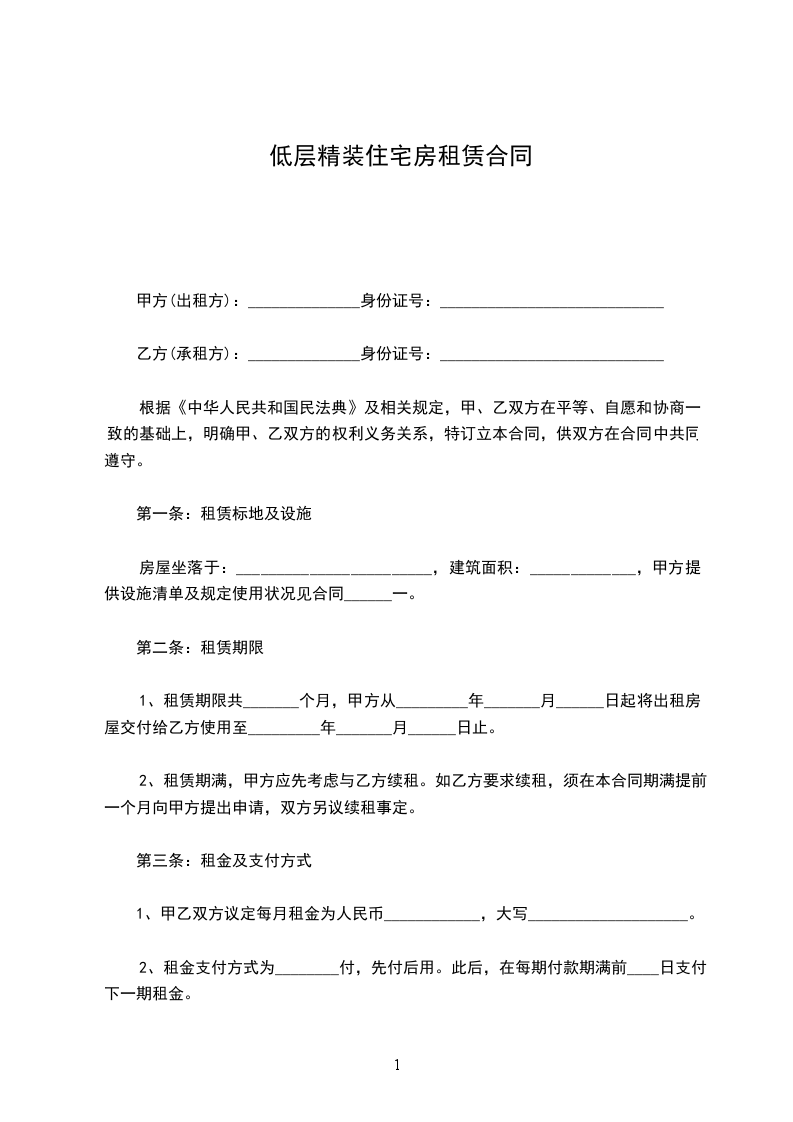 甲方(出租方):______________身份证号:____________________________