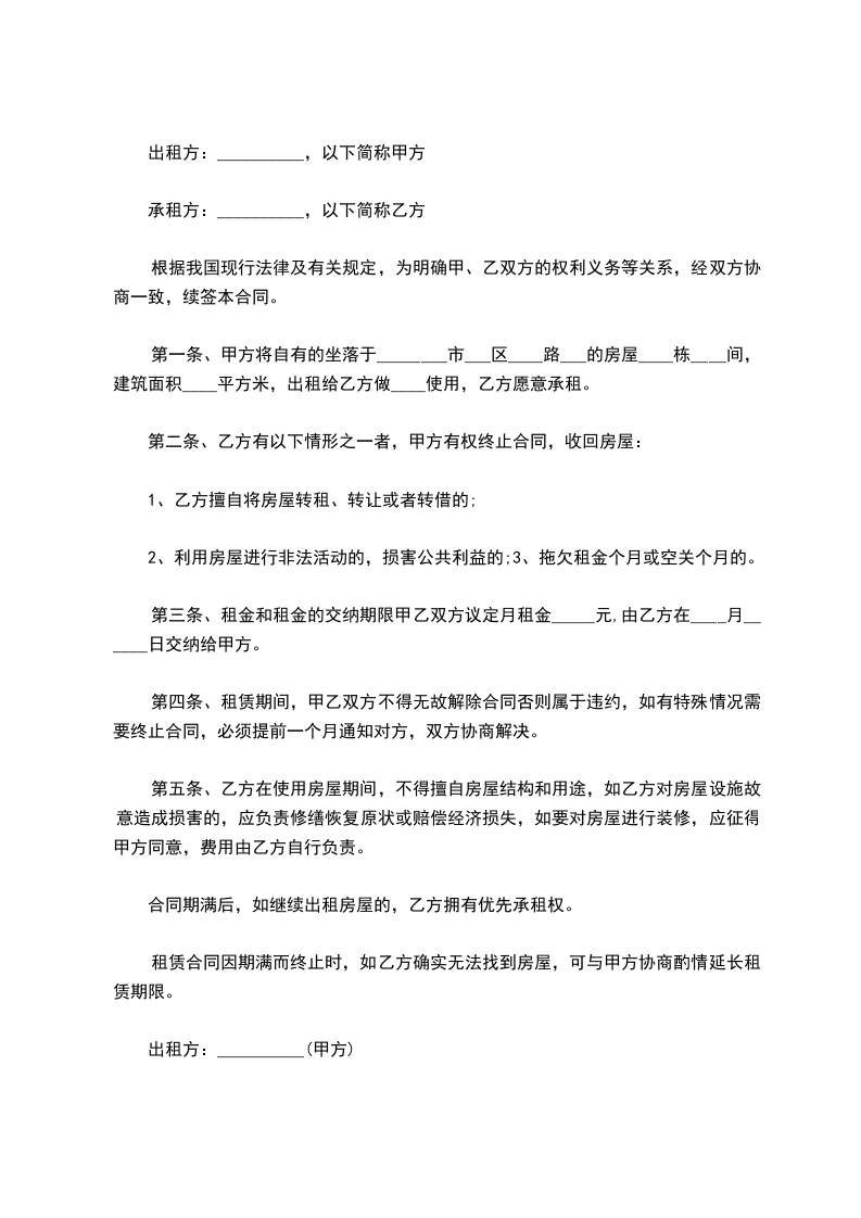 3、租赁期满乙方如需续租,应提前三个月书面向甲方提出。在同等条件下,乙方享有优先承租权。