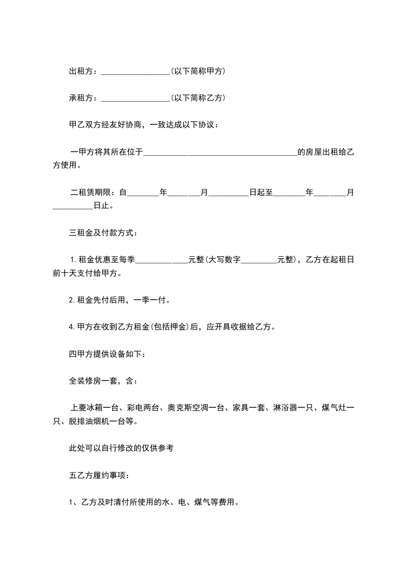 2、本 一式两份,甲乙双方各执一份,经双方签订且乙方支付约定的租赁押金后即签生效。