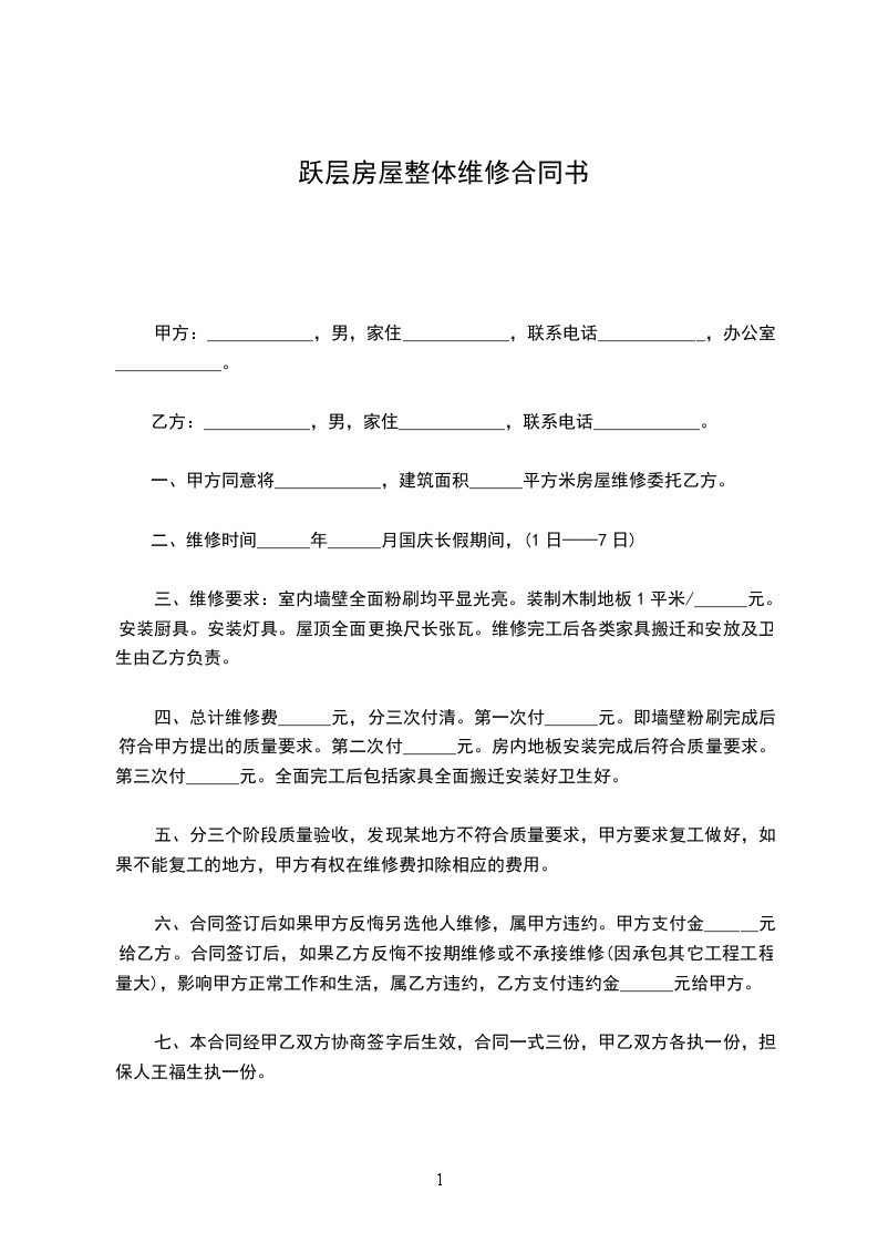 1、租赁期间,租赁房屋的日常维护和维修及其费用,均由乙方负责。但租赁物不可归责 乙方的建筑结构问题由甲方负责维修。