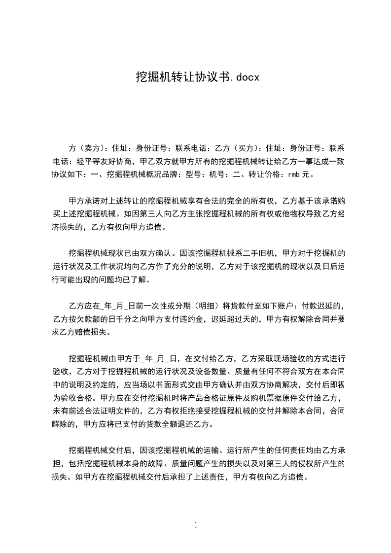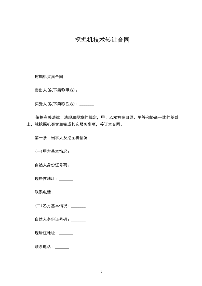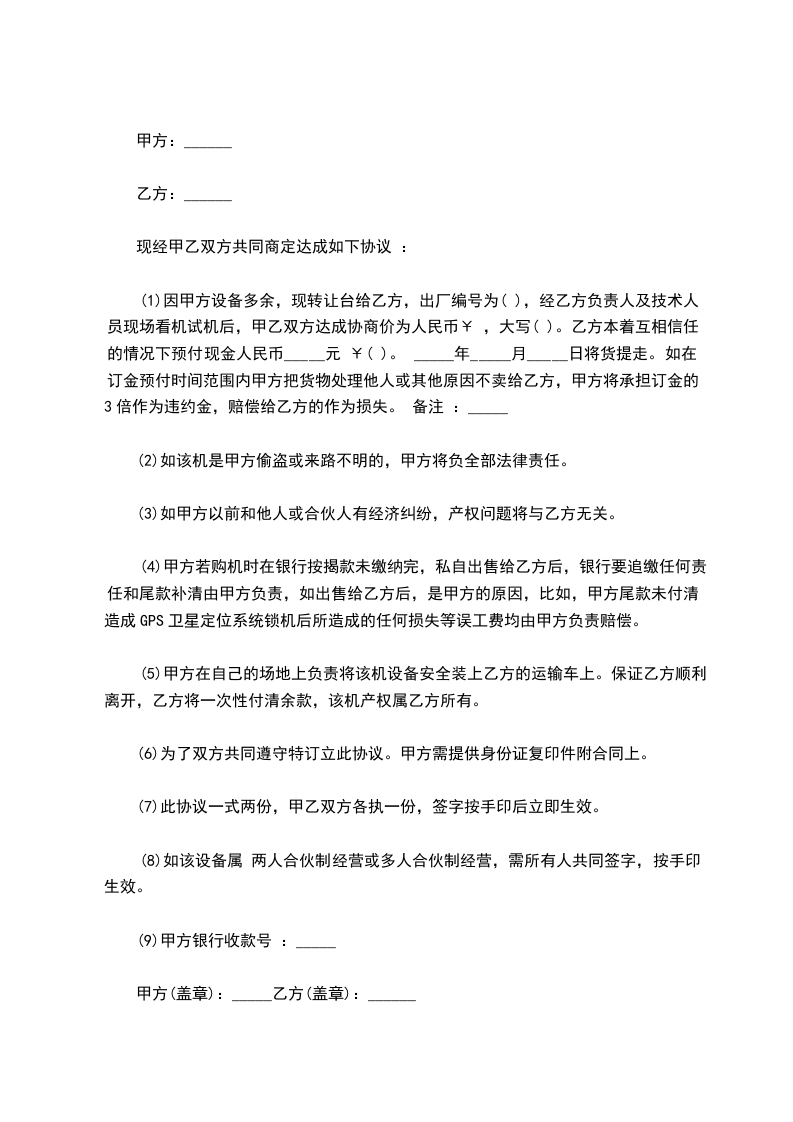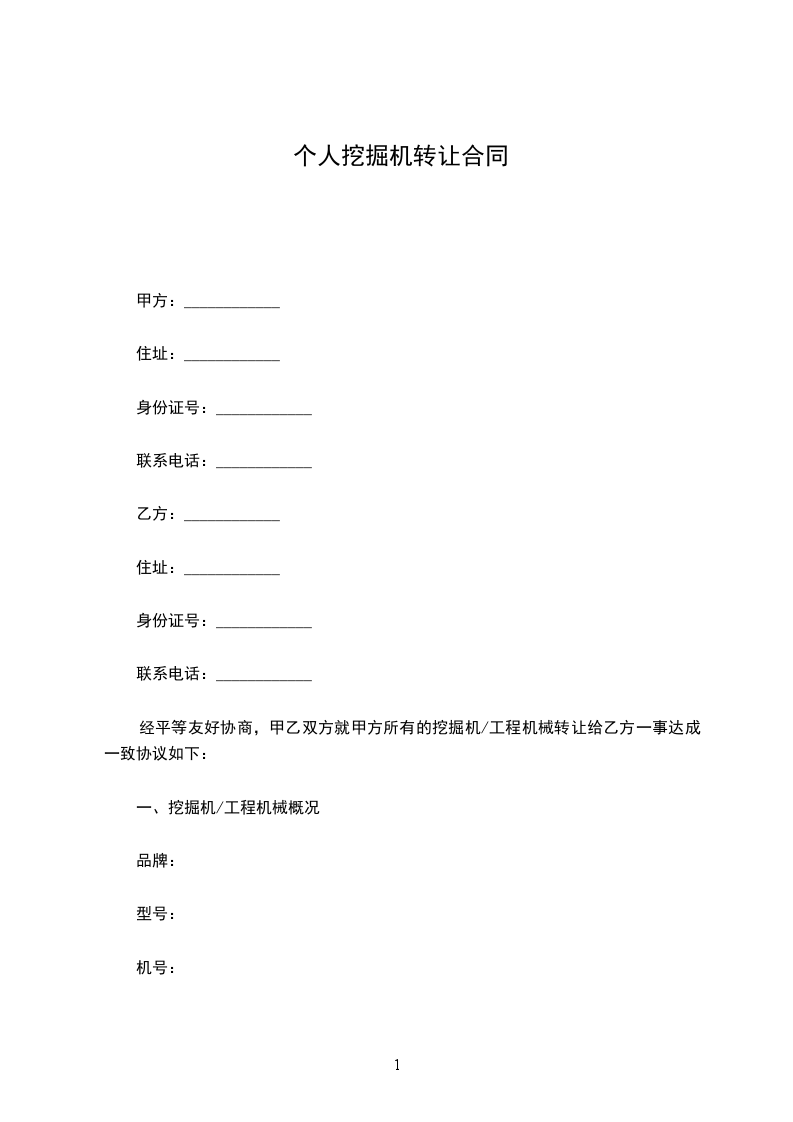 甲方欲将所属挖掘机转让乙方,(挖掘机型号 :_____,发动机品牌 :_____,发动机型号 :_____,排气量_____。