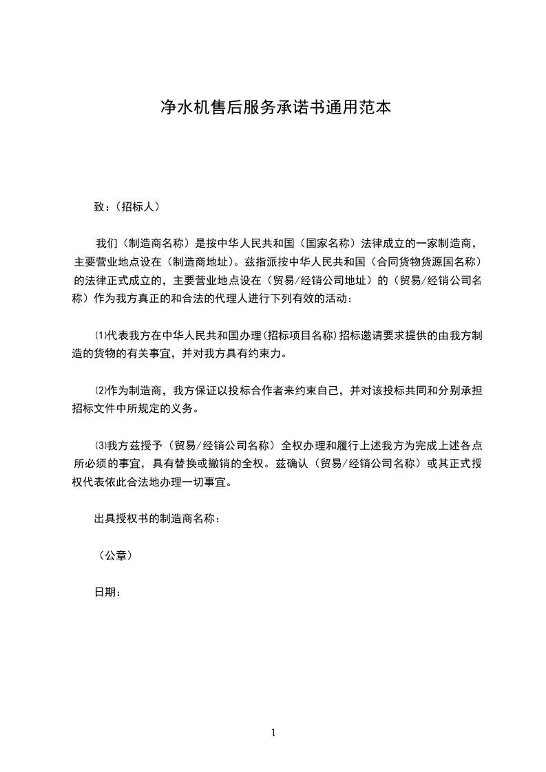 为做好_________________品牌建设,针对_________________净水机的售后服务工作,明确_________________与经销商双方彼此责任,更好地服务_________________用户,特制定本协议,以便双方共同遵守: