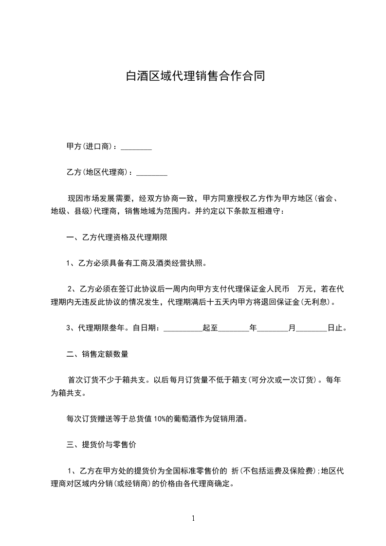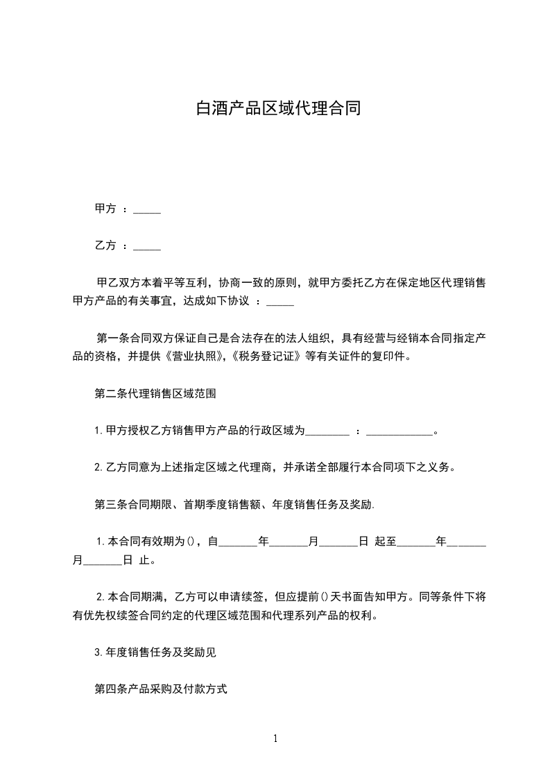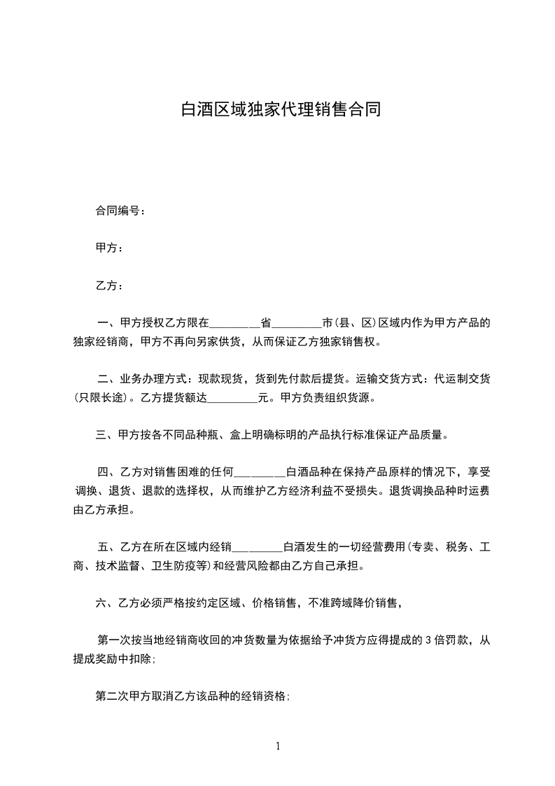 1.甲方授权乙方销售甲方产品的行政区域为________ :____________。