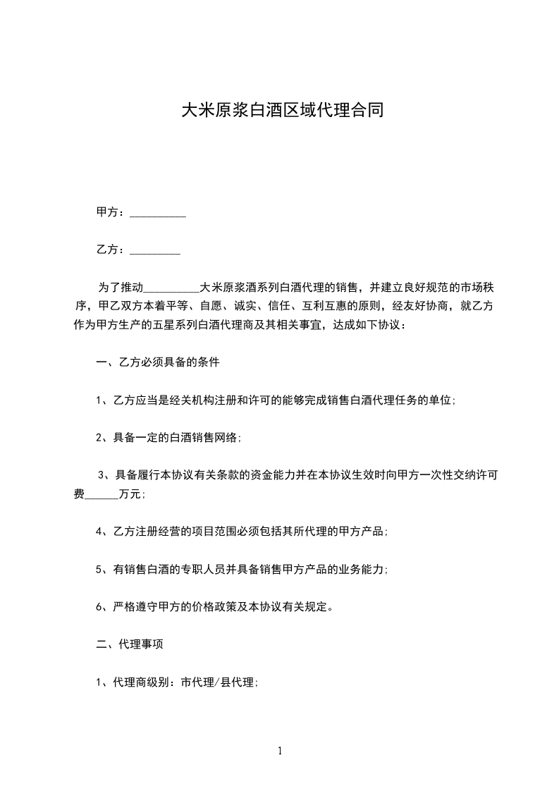 甲乙双方本着平等互利,协商一致的原则,就甲方委托乙方在保定地区代理销售甲方产品的有关事宜,达成如下协议 :_____