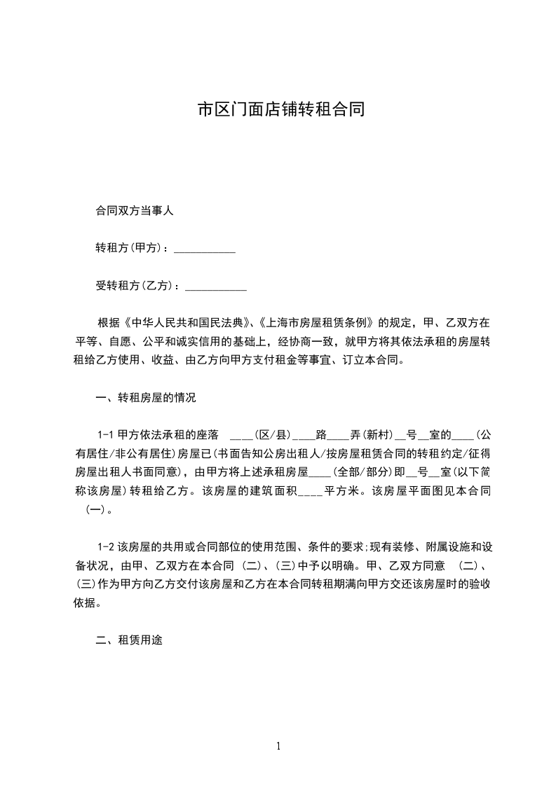 1-1甲方依法承租的座落 ____(区/县)____路____弄(新村)__号__室的____(公有居住/非公有居住)房屋已(书面告知公房出租人/按房屋租赁合同的转租约定/征得房屋出租人书面同意),由甲方将上述承租房屋____(全部/部分)即__号__室(以下简称该房屋)转租给乙方。该房屋的建筑面积____平方米。该房屋平面图见本合同 (一)。
