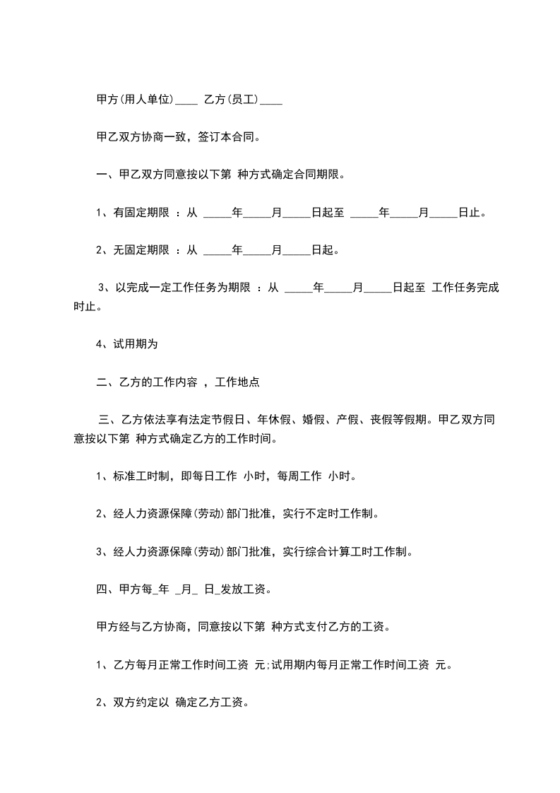 甲方(用人单位)____ 乙方(员工)____