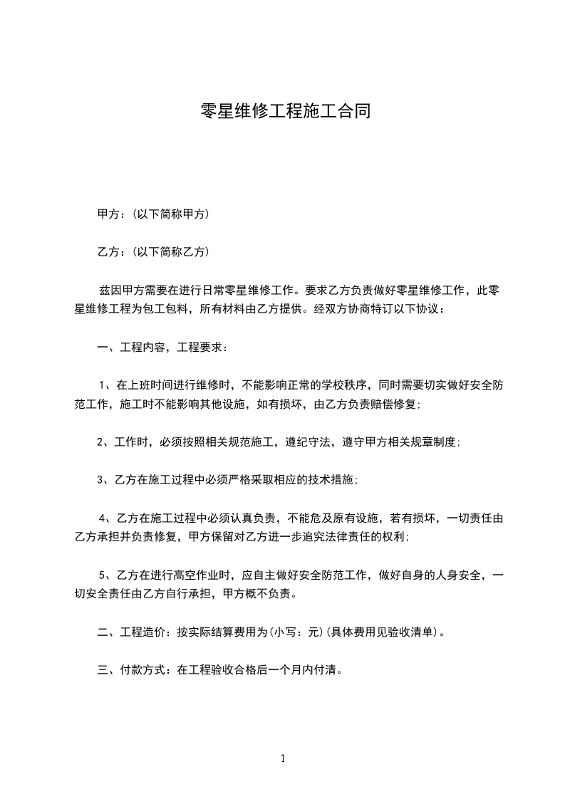 4.4施工质量保证期为1年,自协议内容全部完成经工程验收合格之后一年内因施工质量引起的返修乙方必须无条件进行整修并承担相应费用;