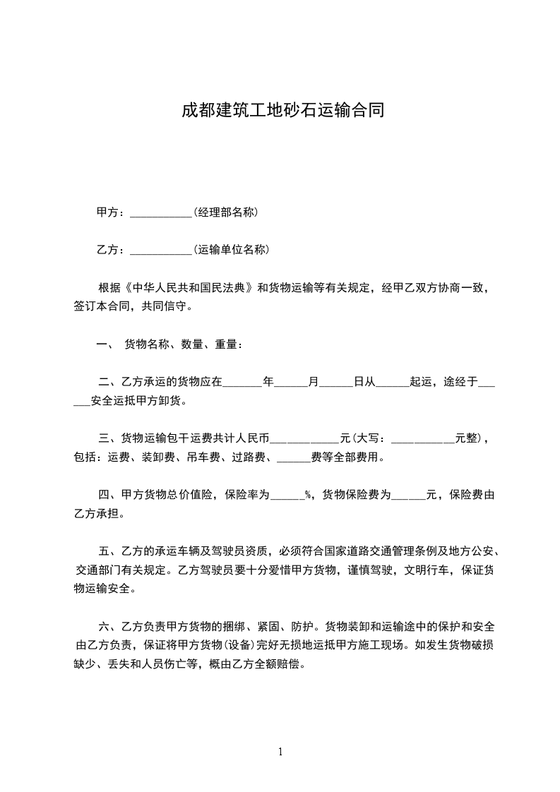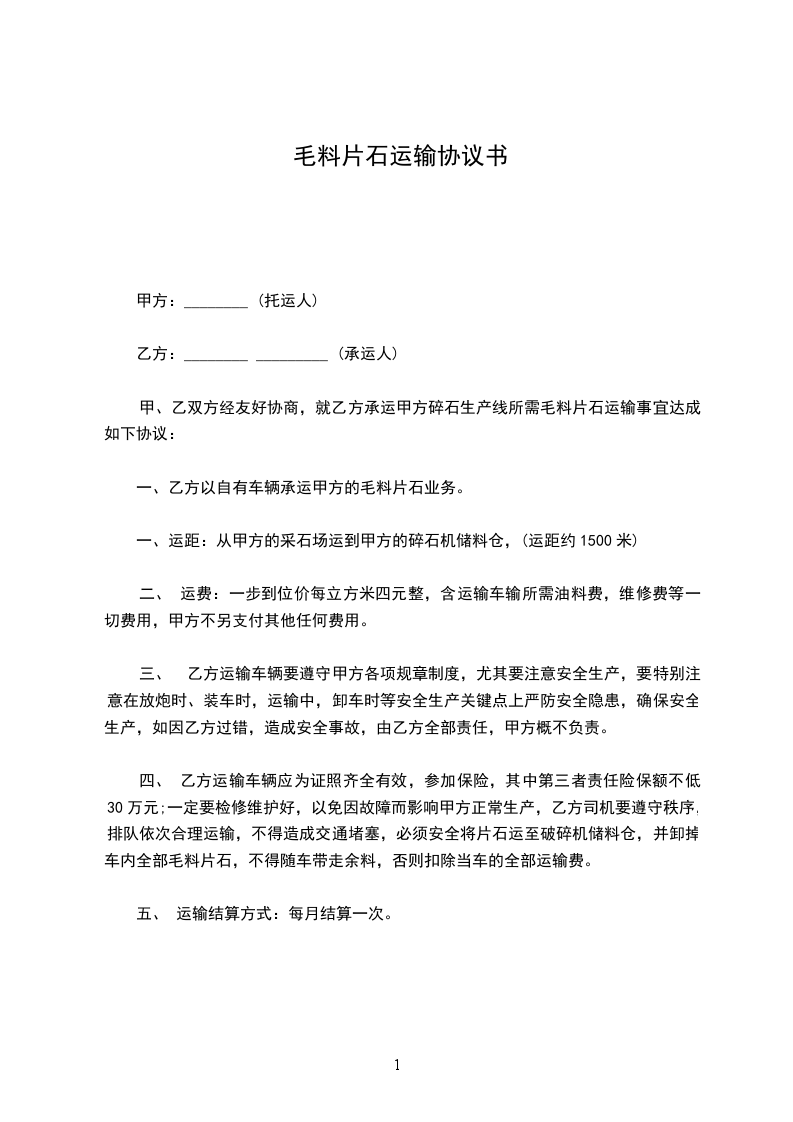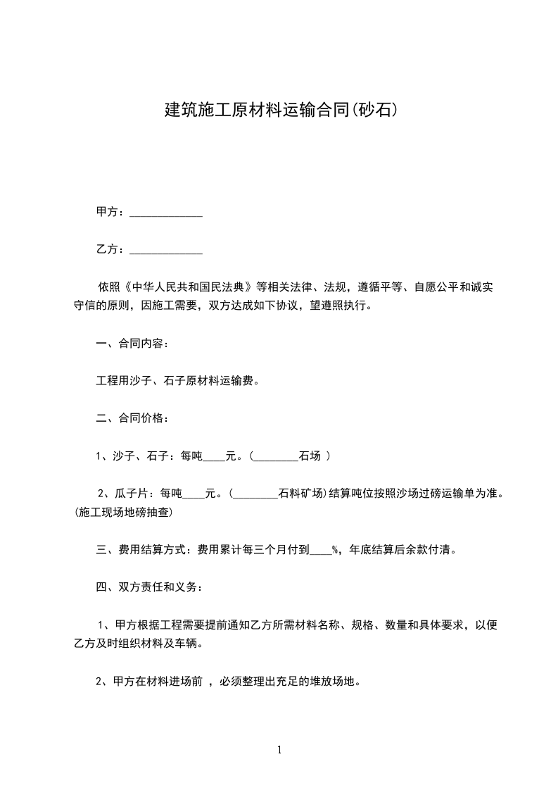 本工程材料运输,经过议价,确定由 承担运输任务,现甲、乙双方自愿达成以下协议。