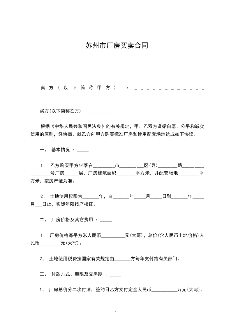 1、 乙方购买甲方坐落在_________市__________区(县)________路_________ ________号厂房______层,厂房建筑面积________平方米,并配套场地_________平方米,按房产证为准。