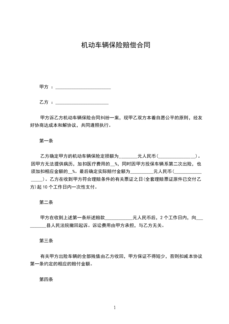 甲方诉乙方机动车辆保险合同纠纷一案,现甲乙双方本着自愿公平的原则,经友好协商达成本和解协议,共同遵照执行。