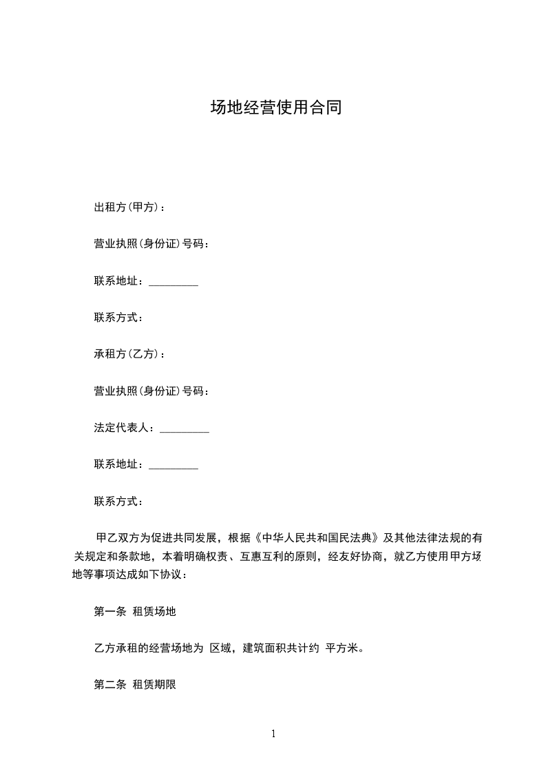 甲乙双方为促进共同发展,根据《中华人民共和国民法典》及其他法律法规的有关规定和条款地,本着明确权责、互惠互利的原则,经友好协商,就乙方使用甲方场地等事项达成如下协议: