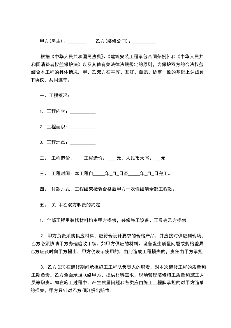 甲方(房主):________ 乙方(装修公司):__________