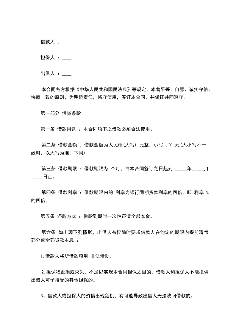 第一部分 借贷条款