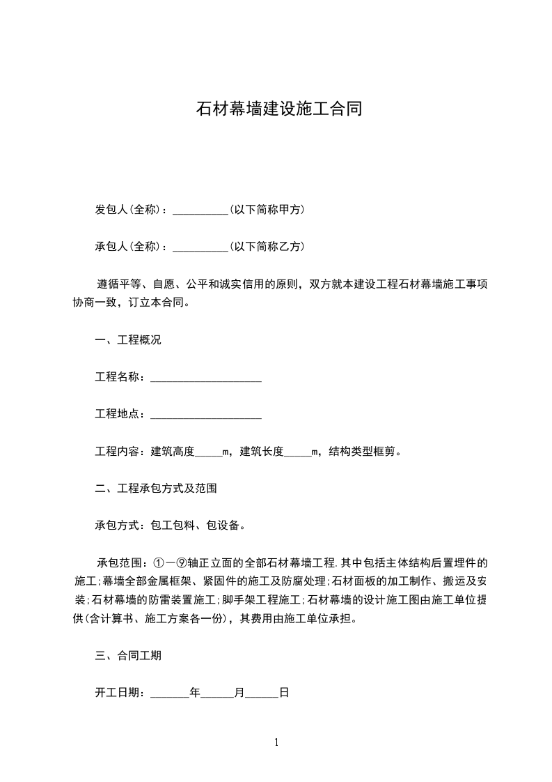 遵循平等、自愿、公平和诚实信用的原则,双方就本建设工程石材幕墙施工事项协商一致,订立本合同。