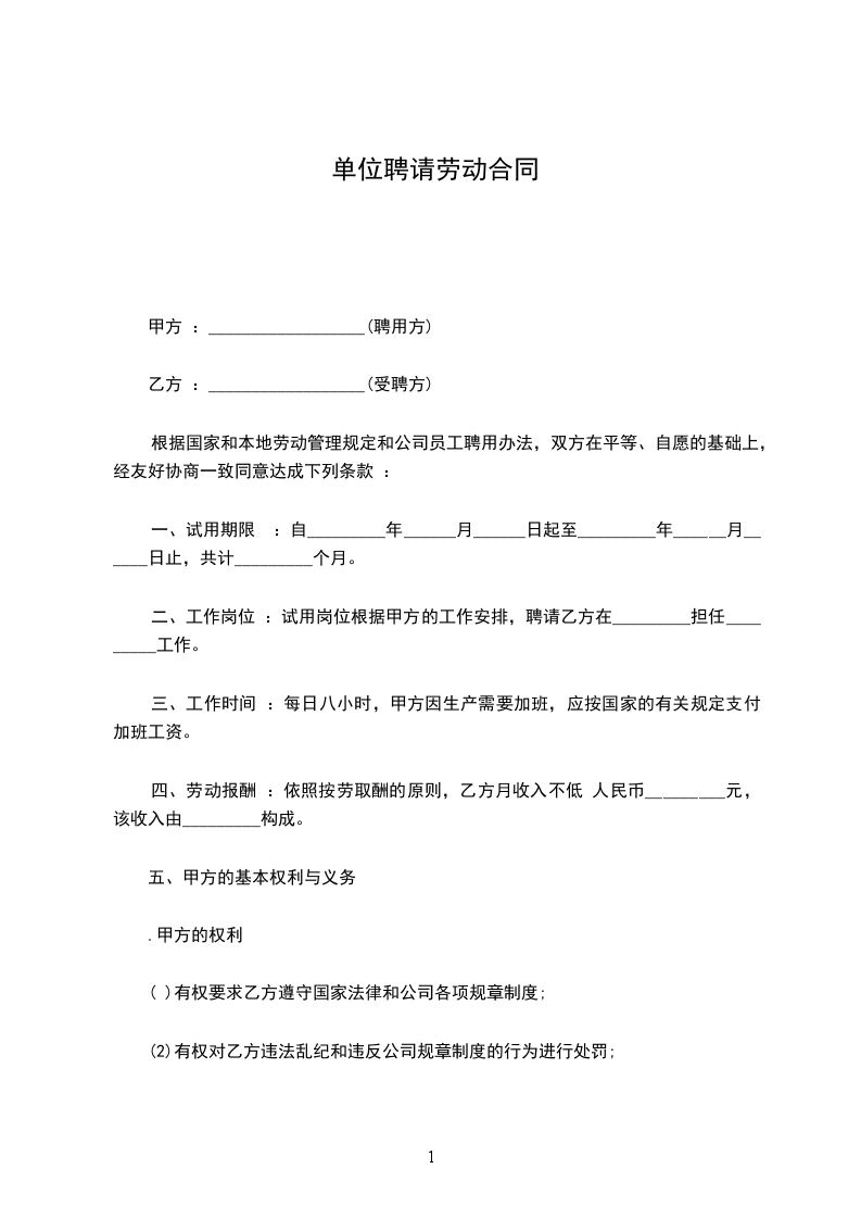 二、工作岗位 :试用岗位根据甲方的工作安排,聘请乙方在_________担任_________工作。