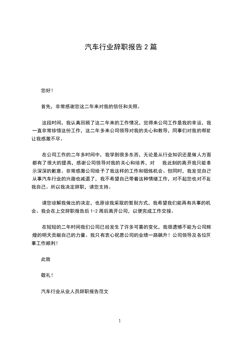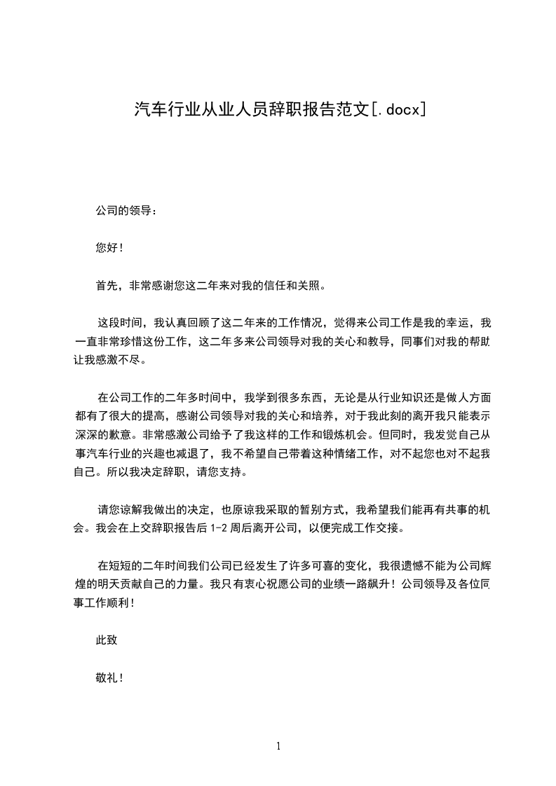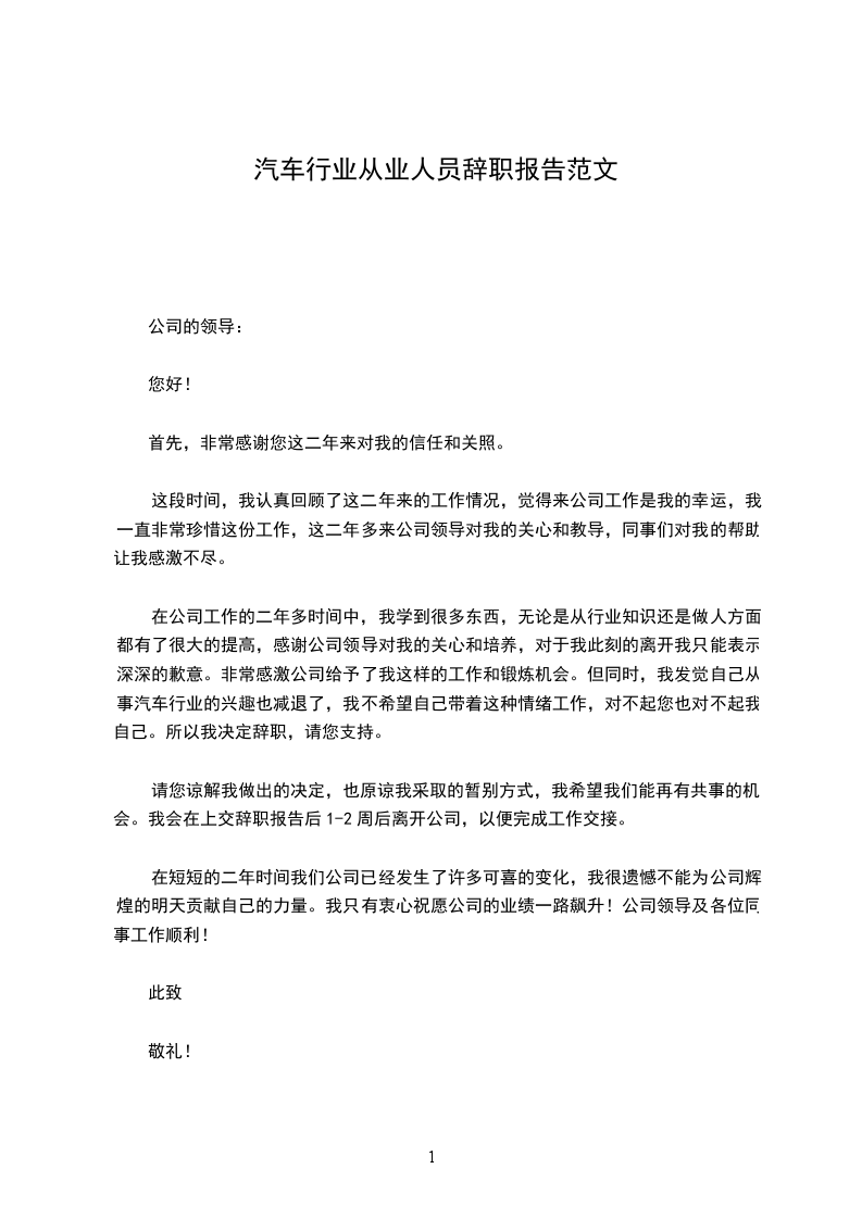 在公司工作的二年多时间中,我学到很多东西,无论是从行业知识还是做人方面都有了很大的提高,感谢公司领导对我的关心和培养,对 我此刻的离开我只能表示深深的歉意。非常感激公司给予了我这样的工作和锻炼机会。但同时,我发觉自己从事汽车行业的兴趣也减退了,我不希望自己带着这种情绪工作,对不起您也对不起我自己。所以我决定辞职,请您支持。