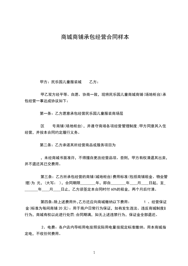 第一条:乙方愿意承包经营民乐园儿童服装商场层