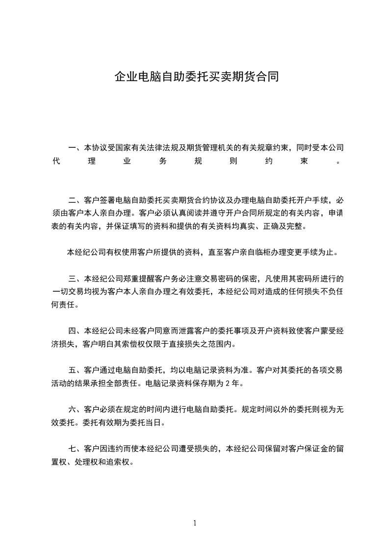 一、本协议受国家有关法律法规及期货管理机关的有关规章约束,同时受本公司代理业务规则约束。