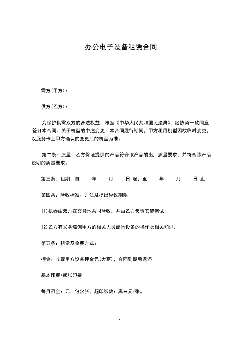 根据《中华人民共和国民法典》的规定,经双方协商一致,就乙方向甲方承租以下设备达成协议: