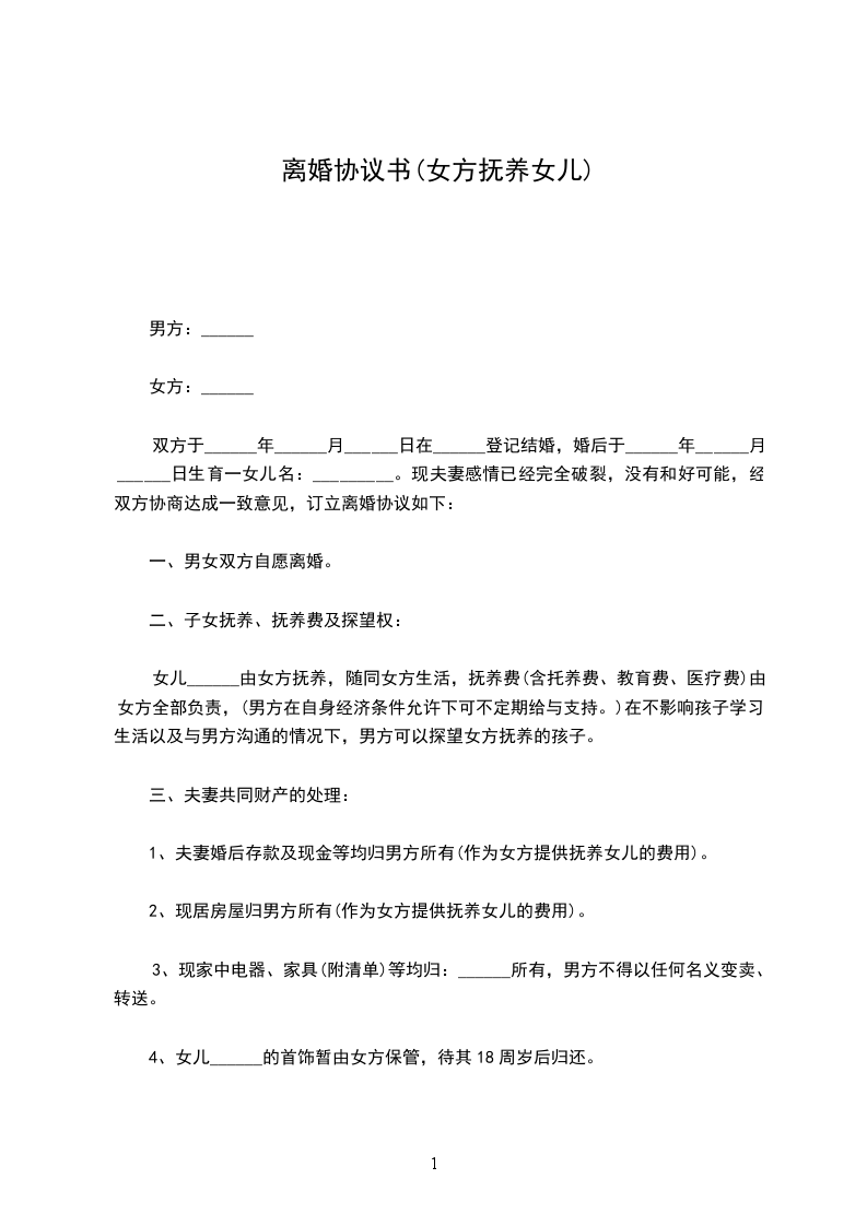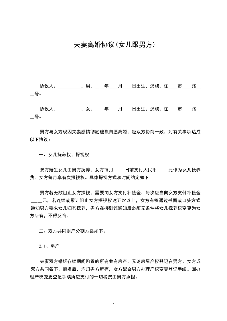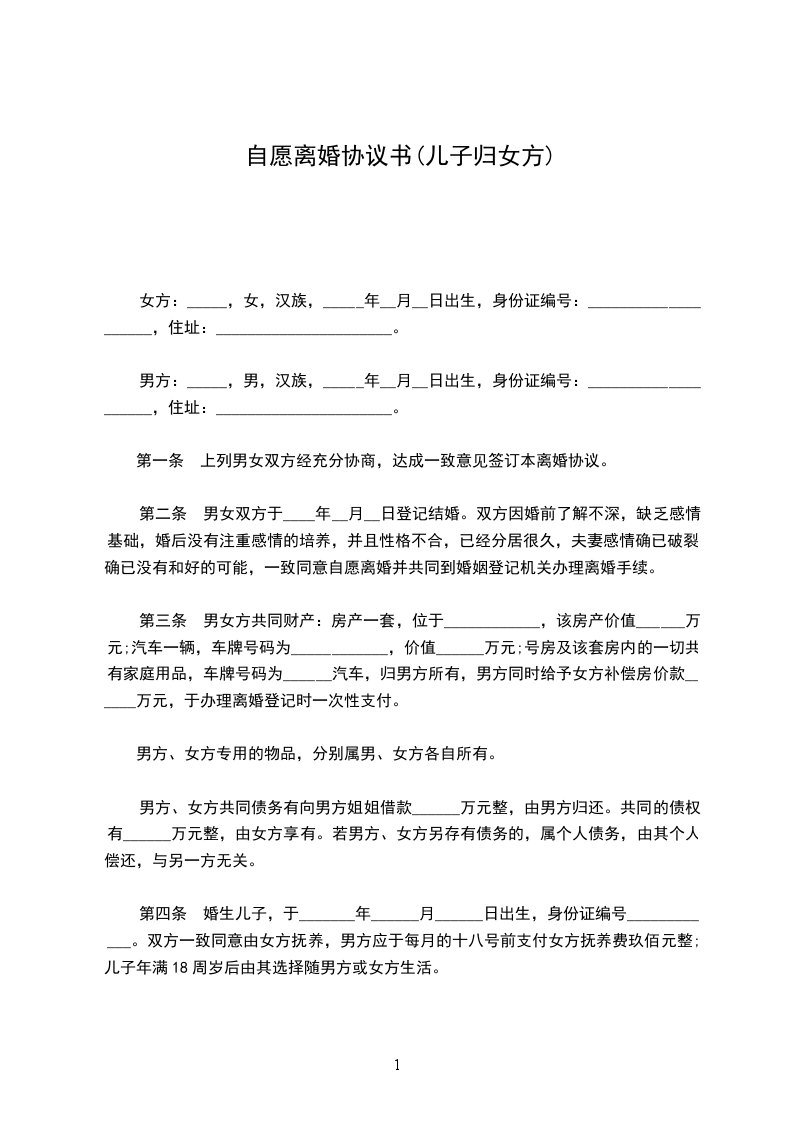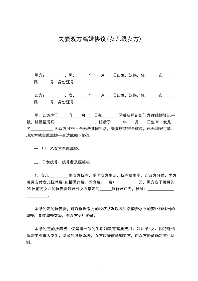 女方 :_________________,女,汉族,________年_____月_____日生, 家住__________________________________,身份证号码 :___________________