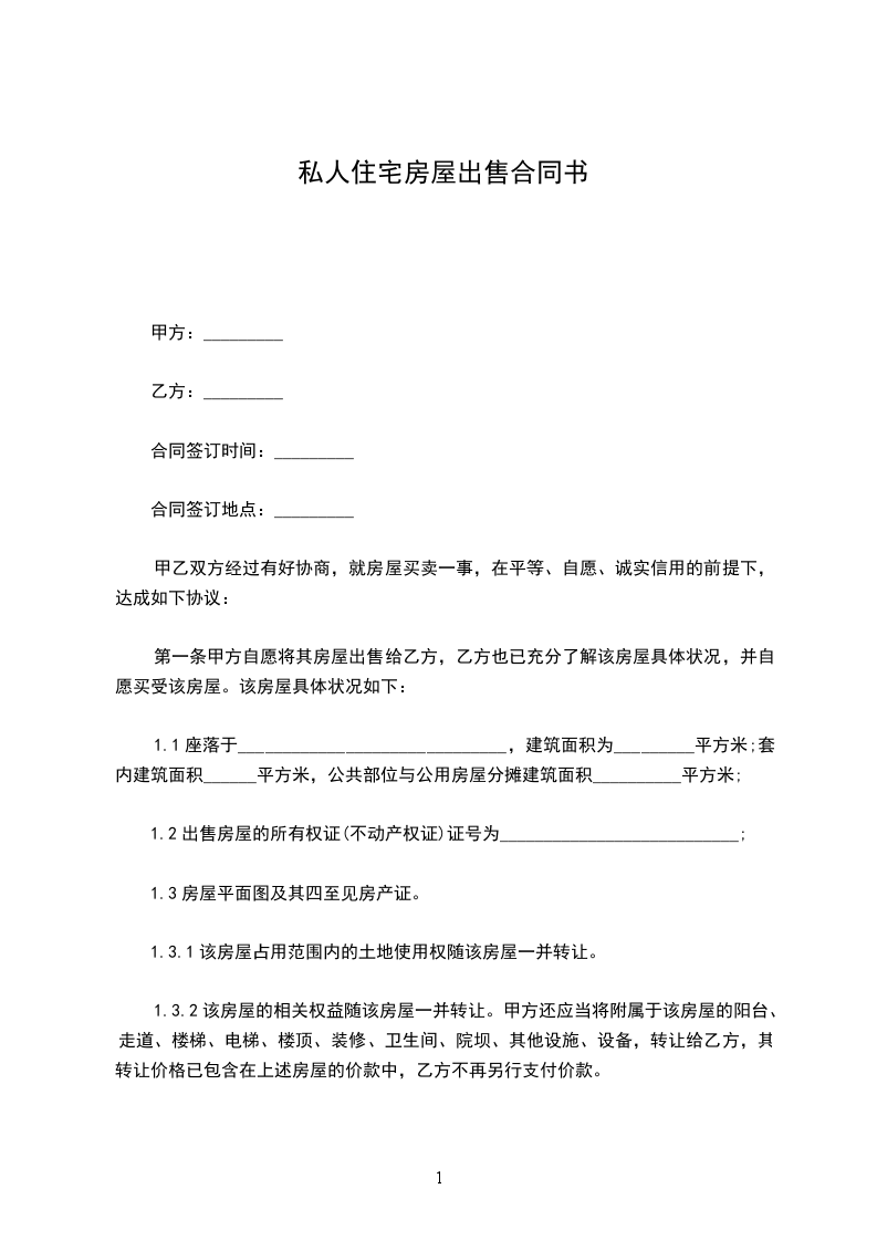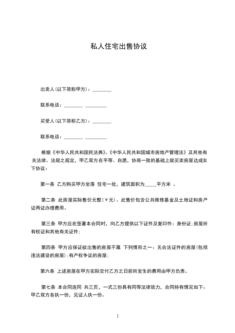 第一条 乙方购买甲方坐落 住宅一处,建筑面积为_____平方米 。