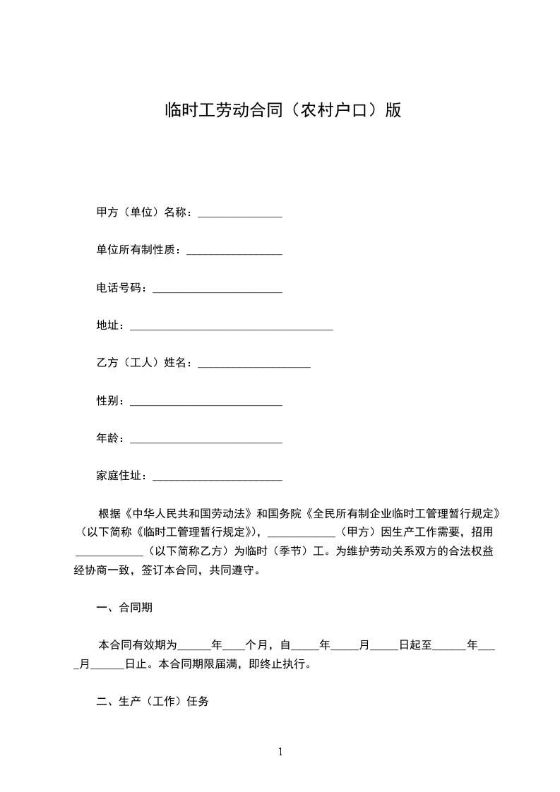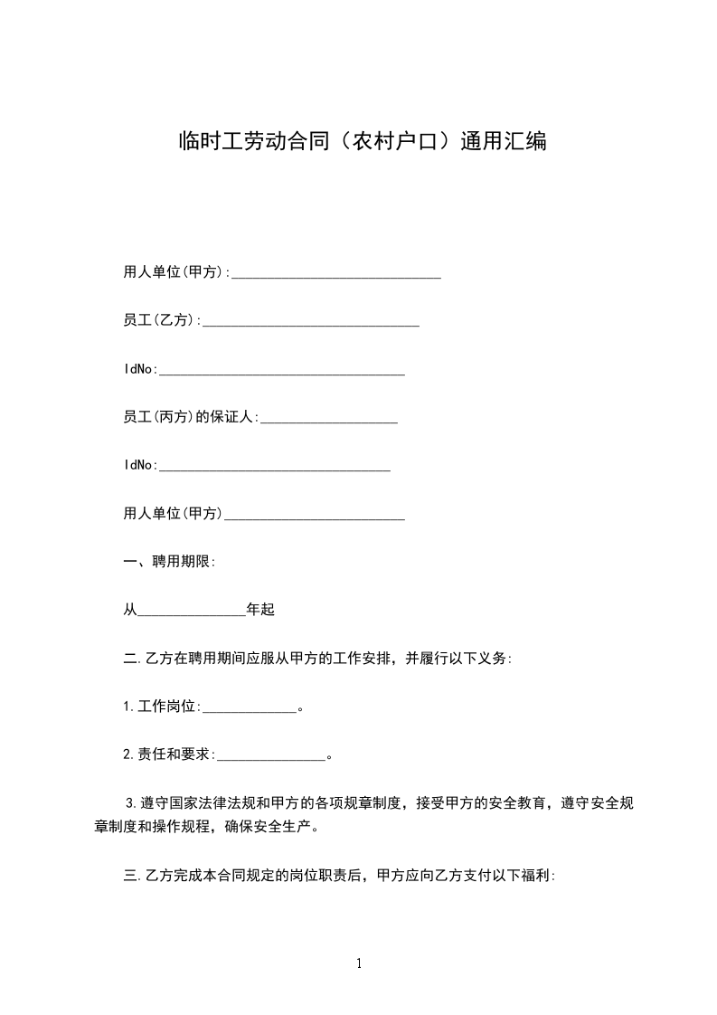 一、乙方因_________项目建设,需使用_________县(市,区)_________乡(镇)_________村(居委会)的土地作为临时用地,用地总面积_________平方米(其中水田_________平方米,旱地_________平方米,非耕地_________平方米)。