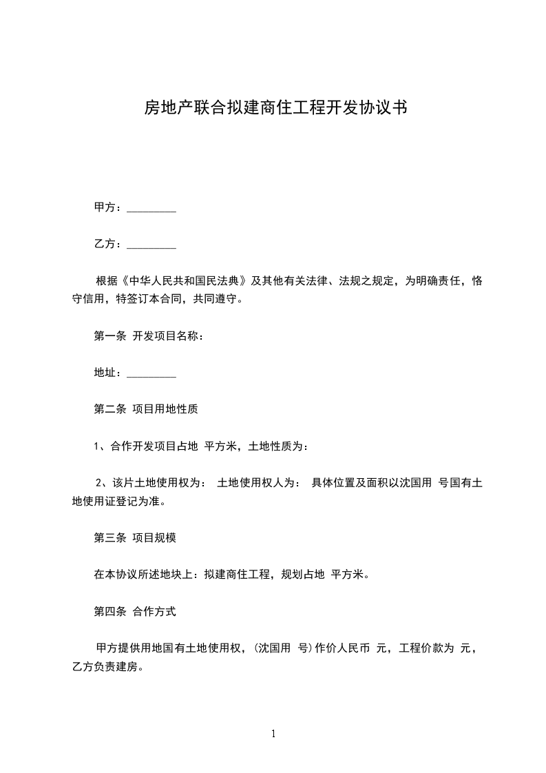 第一条 开发项目名称: