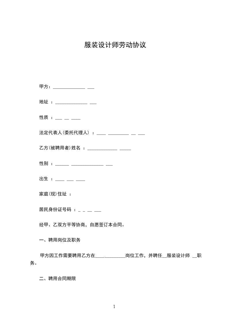 甲方因工作需要聘用乙方在_____________岗位工作,并聘任__服装设计师 __职务。