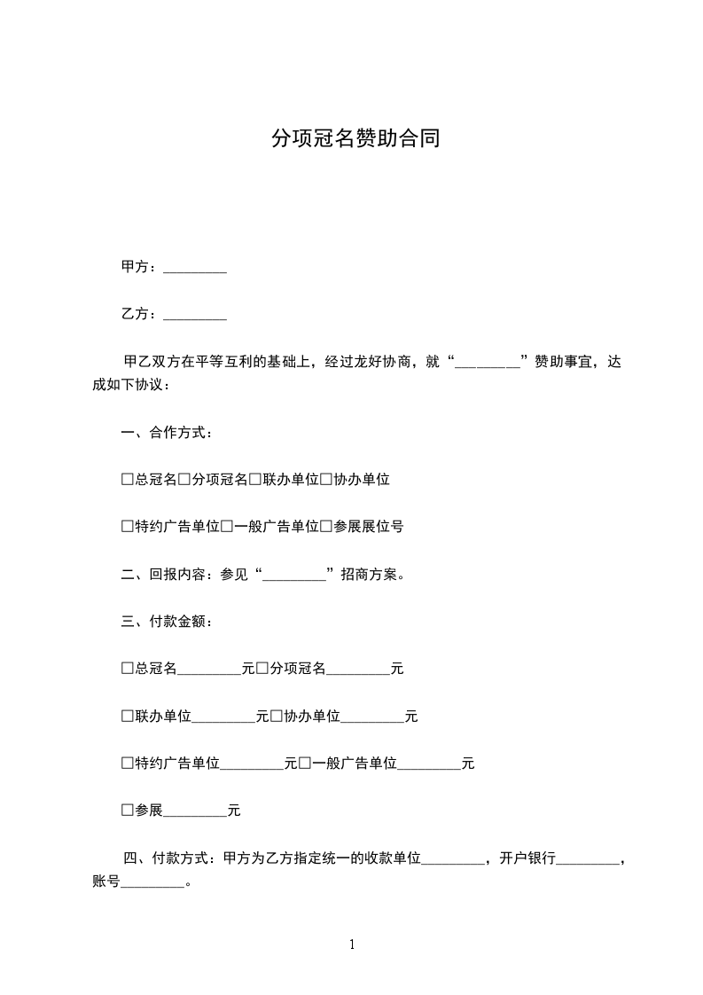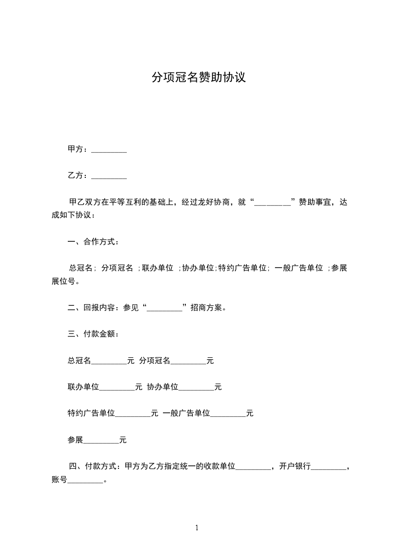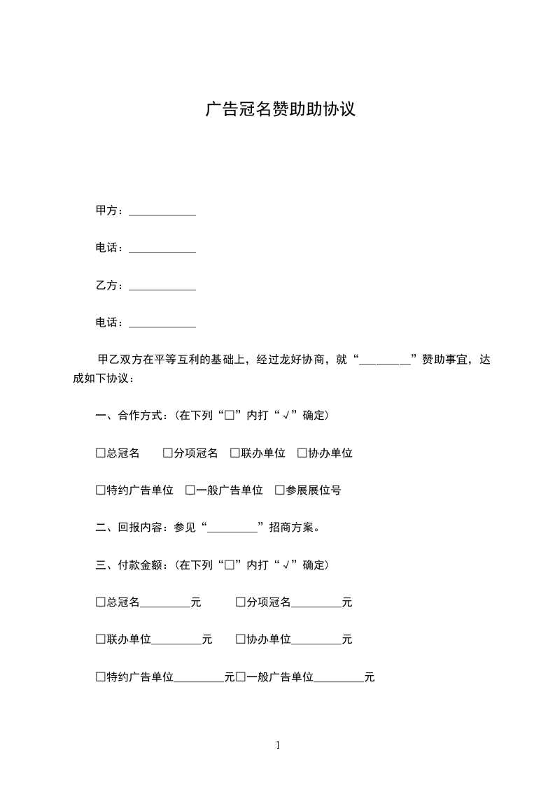 甲,乙双方在平等,自愿,协商一致的基础上,就活动冠名赞助的有关事宜,现达成如下协议: