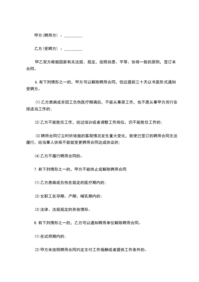 5、在聘用期间,如乙方提出并擅自中止合同,则乙方向甲方承担违约责任包括向甲方支付培训金和扣发上月工资。