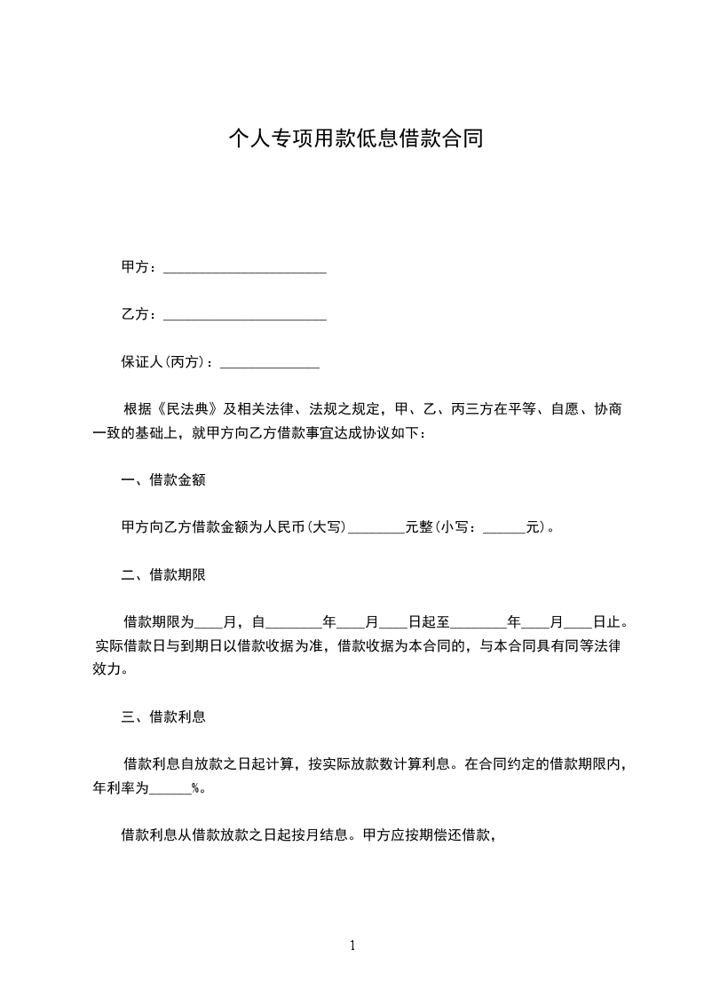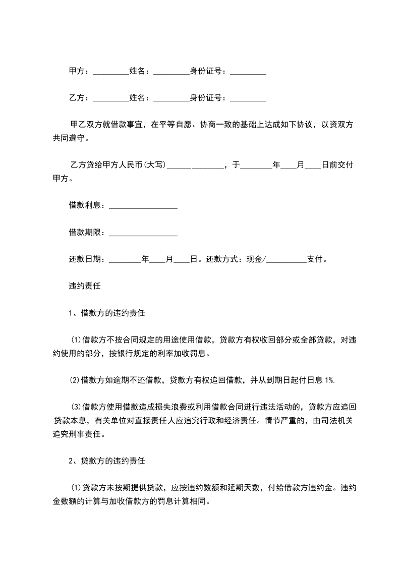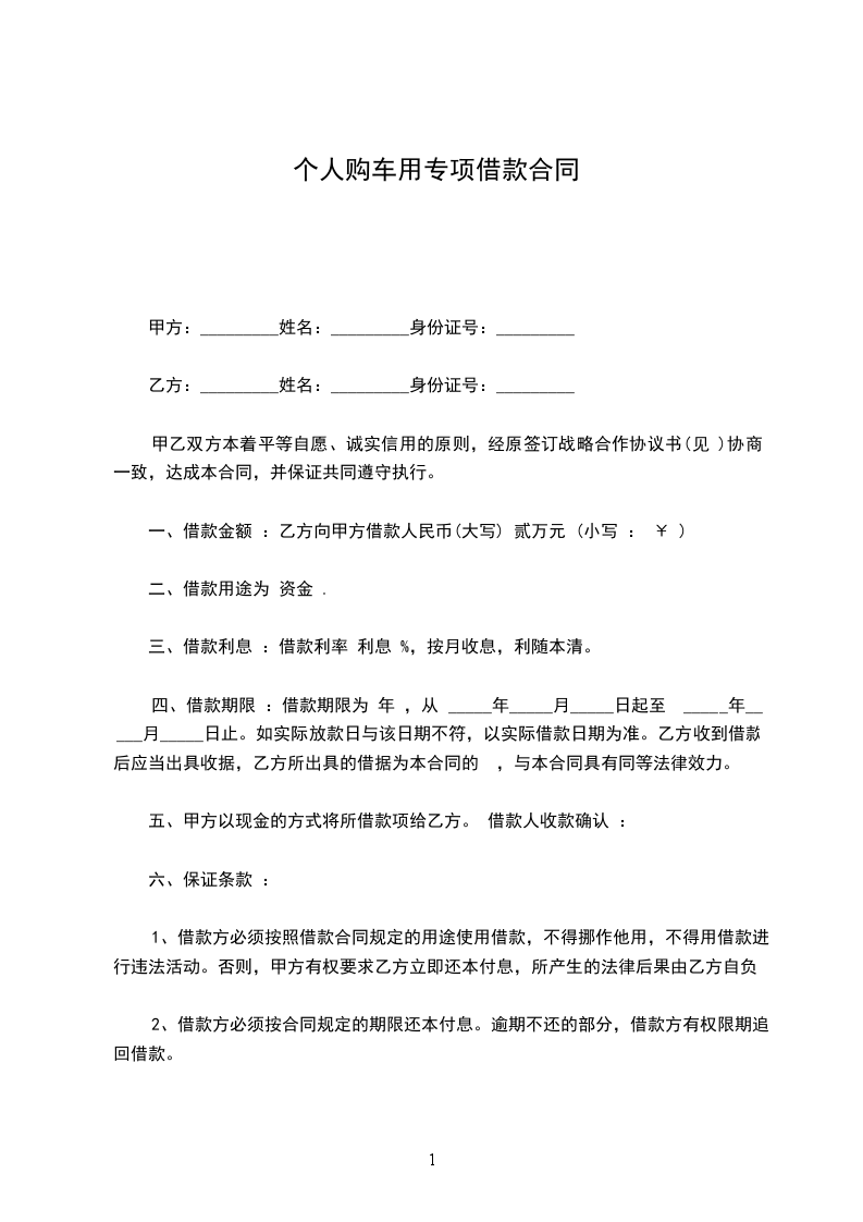 一、借款金额 :乙方向甲方借款人民币(大写) 贰万元 (小写 : ¥ )