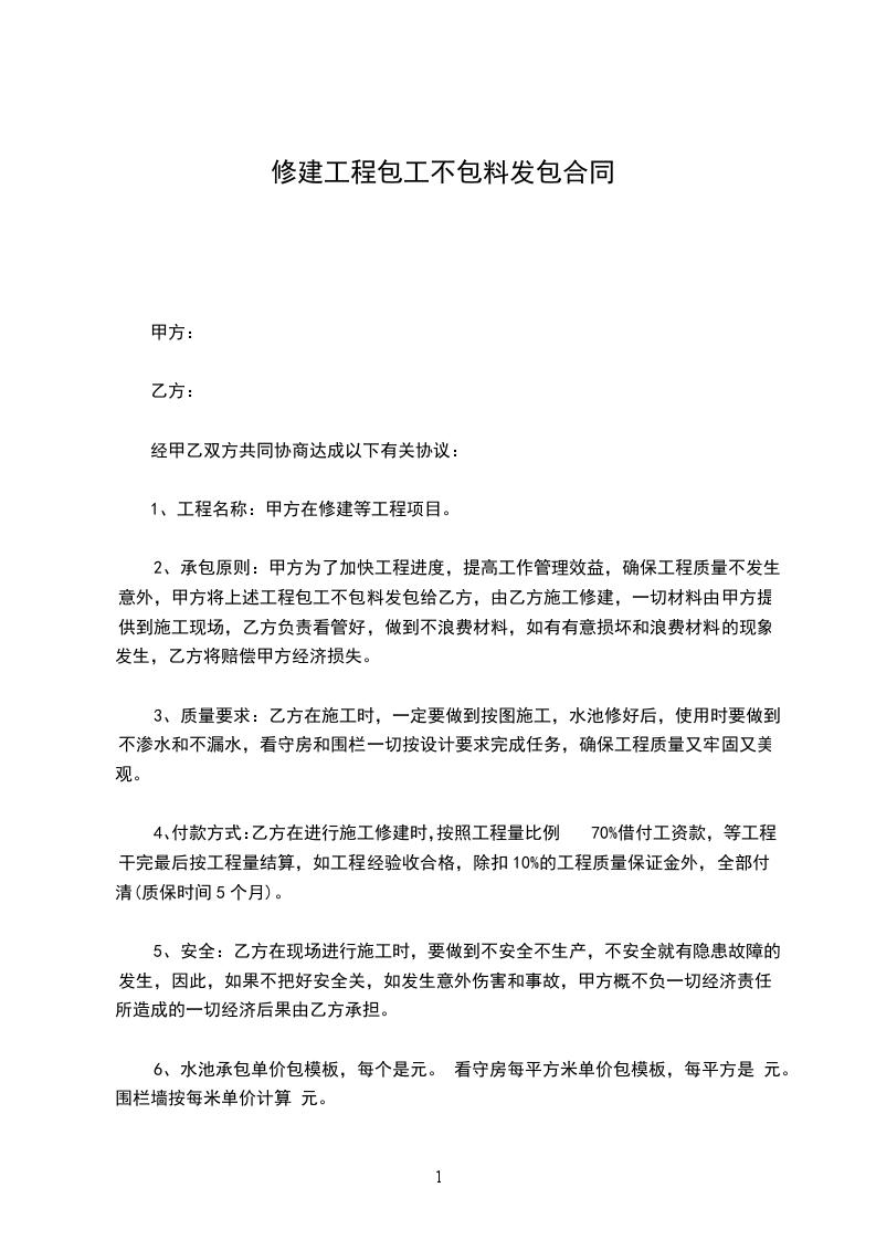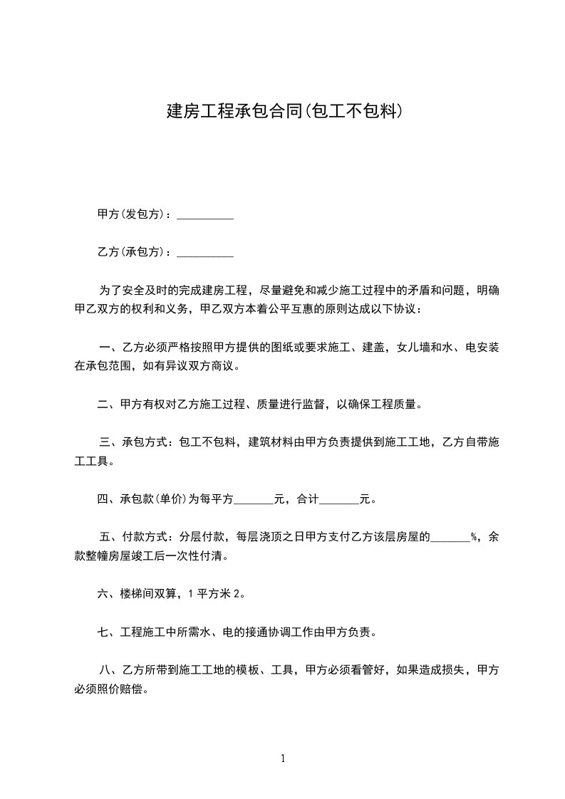 土建工程总单包(即包工不包料)。