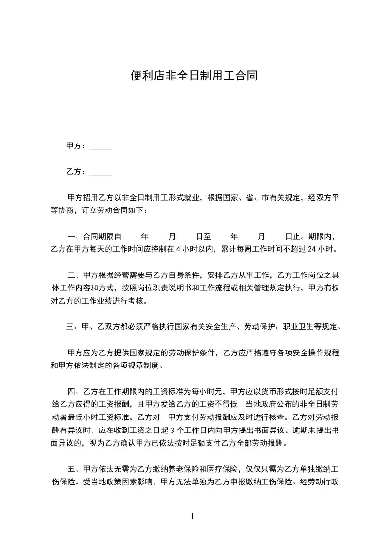 甲方招用乙方以非全日制用工形式就业,根据国家、省、市有关规定,经双方平等协商,订立劳动合同如下: