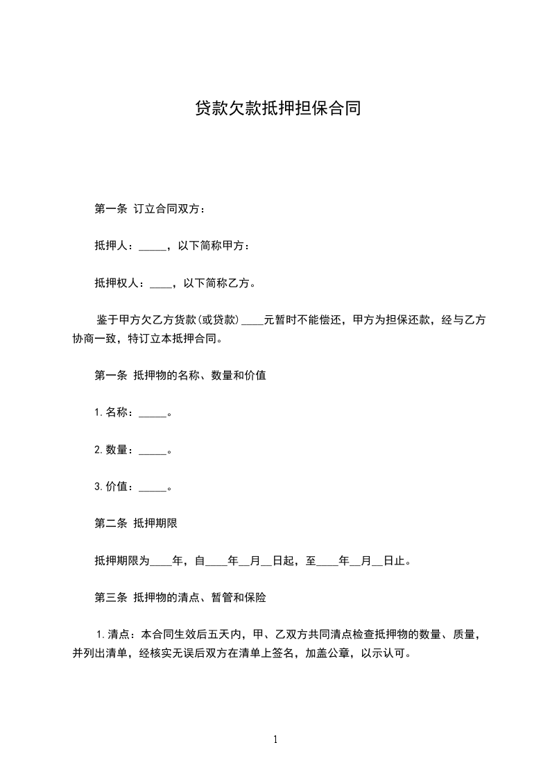 第一条 抵押物的名称、数量和价值