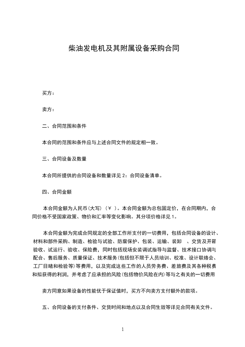 本合同金额为人民币(大写) (¥ )。本合同金额为总包固定价,在合同期内,合同价格不受国家政策、物价和汇率等变化影响。其分项价格详见1。