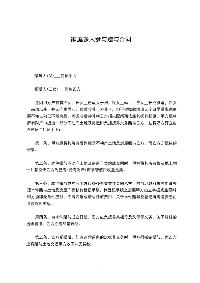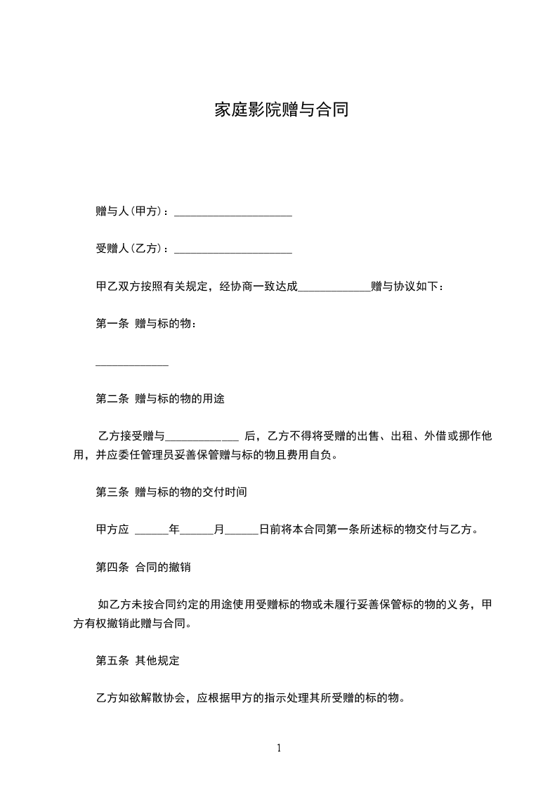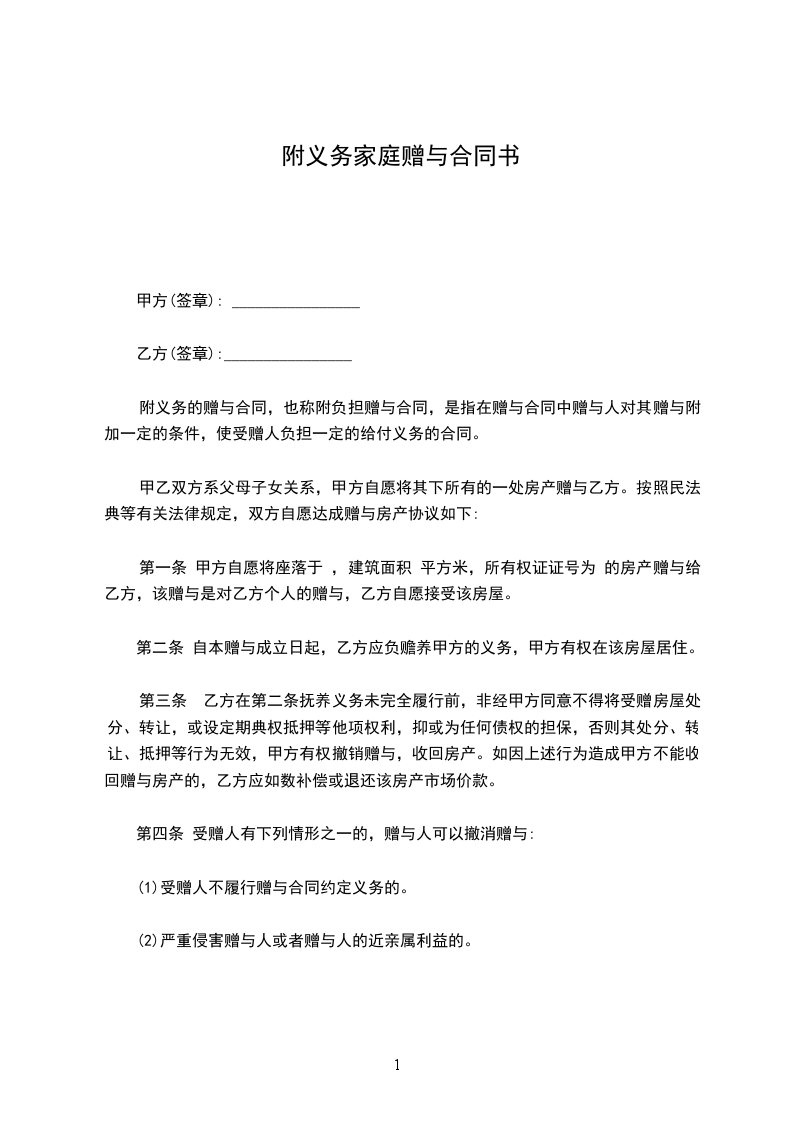 赠与合同甲方(赠与人):____________(写明姓名、住址)乙方(受赠人):____________(写明姓名、住址)