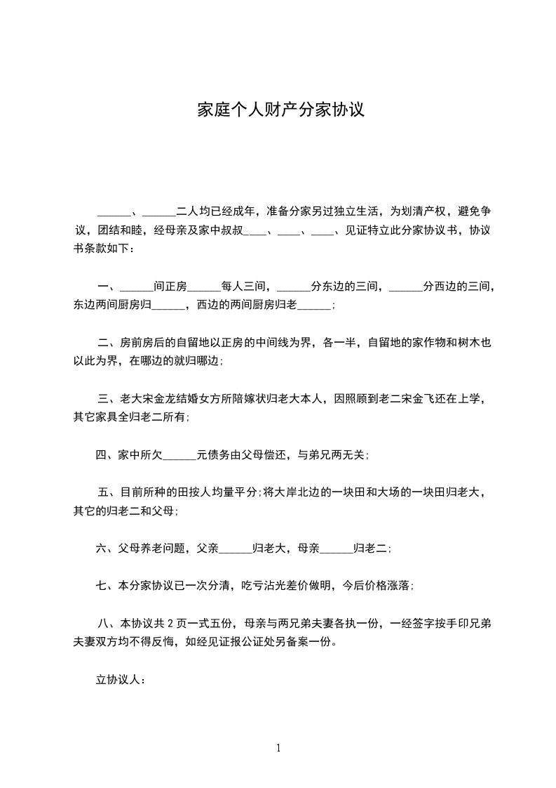 五、本合同一式两份,双方各执一份。