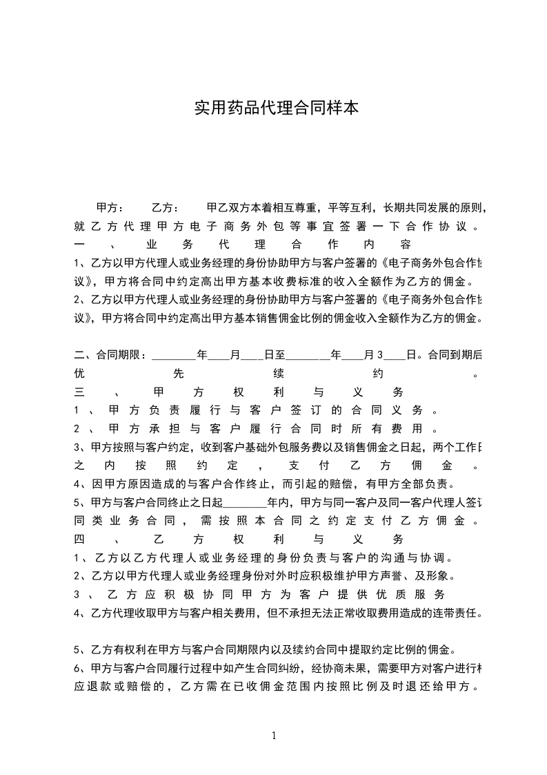 甲方: 乙方: 甲乙双方本着相互尊重,平等互利,长期共同发展的原则,就乙方代理甲方电子商务外包等事宜签署一下合作协议。