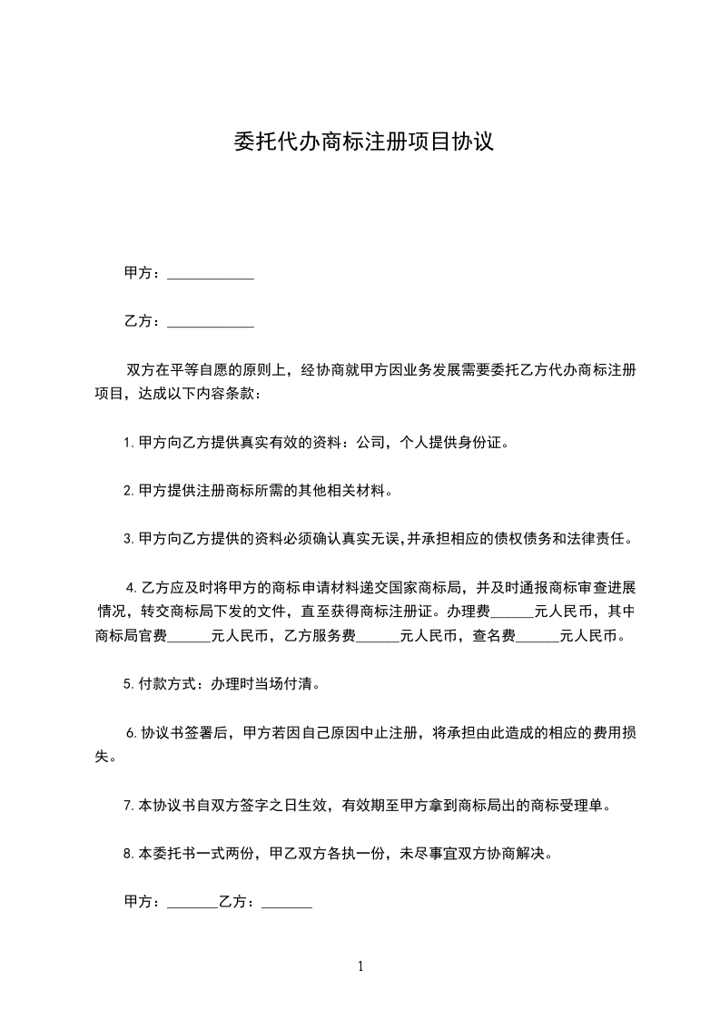1、甲方同意成为乙方的加盟代理商,将其下属客户的商标注册、专利申请等知识产权事宜,委托乙方全权代理代办。正常情况下,甲方保证每月有____元/个,其他项目结算价见 。___个以上的商标注册申请量。商标注册规费、代理费合计为___万元,乙方每月逐笔从保证金中扣除当月注册及代理费用;每月___日前,甲方补足保证金数额;如果当月保证金余额不足支付注册费用,甲方须及时补充保证金。