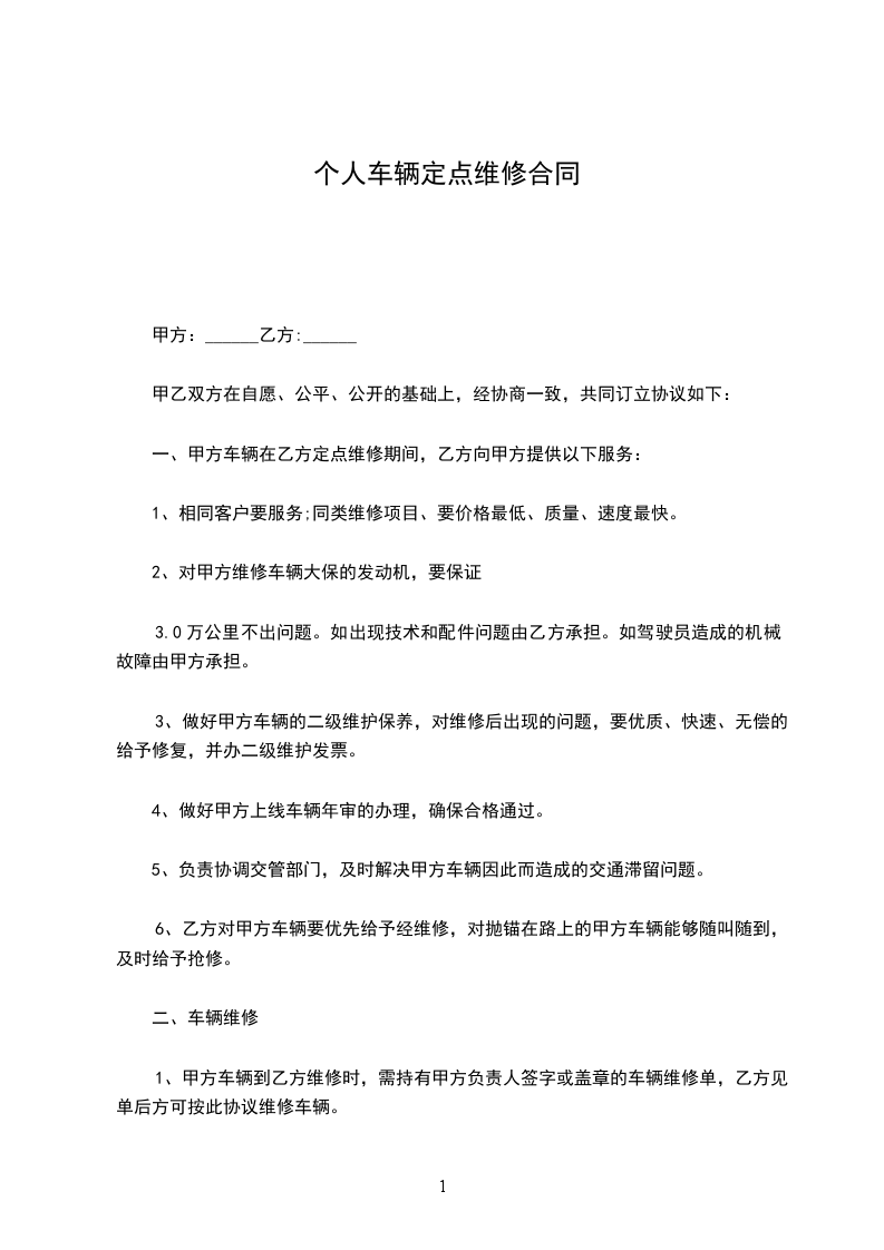 一、甲方车辆在乙方定点维修期间,乙方向甲方提供以下服务: