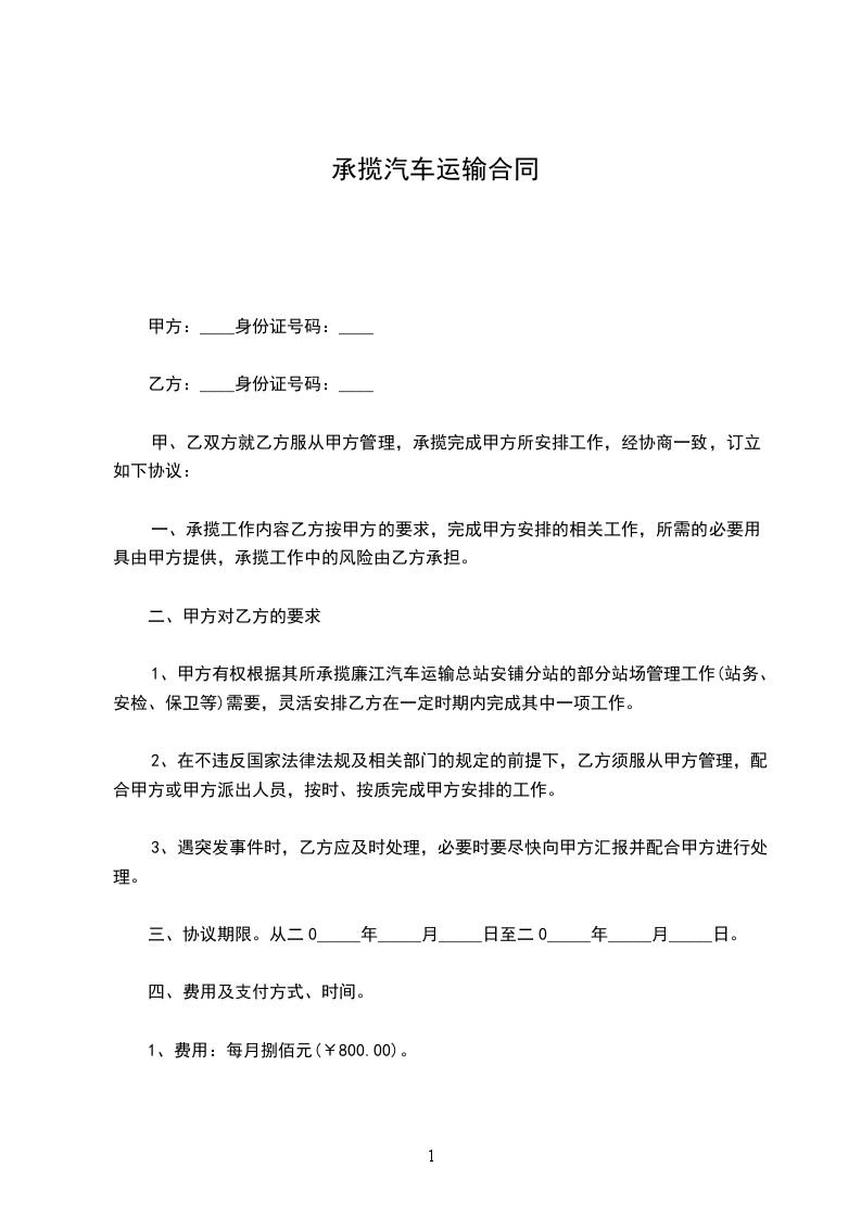 1、甲方有权根据其所承揽廉江汽车运输总站安铺分站的部分站场管理工作(站务、安检、保卫等)需要,灵活安排乙方在一定时期内完成其中一项工作。