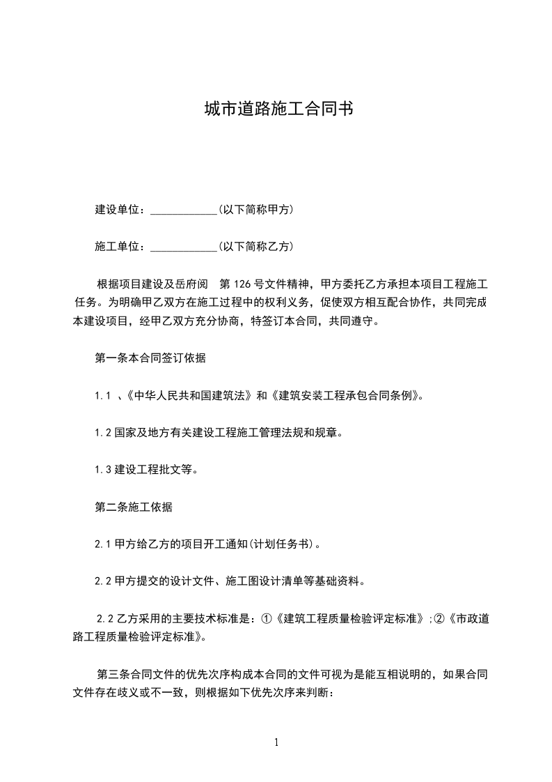 2.2乙方采用的主要技术标准是:①《建筑工程质量检验评定标准》;②《市政道路工程质量检验评定标准》。