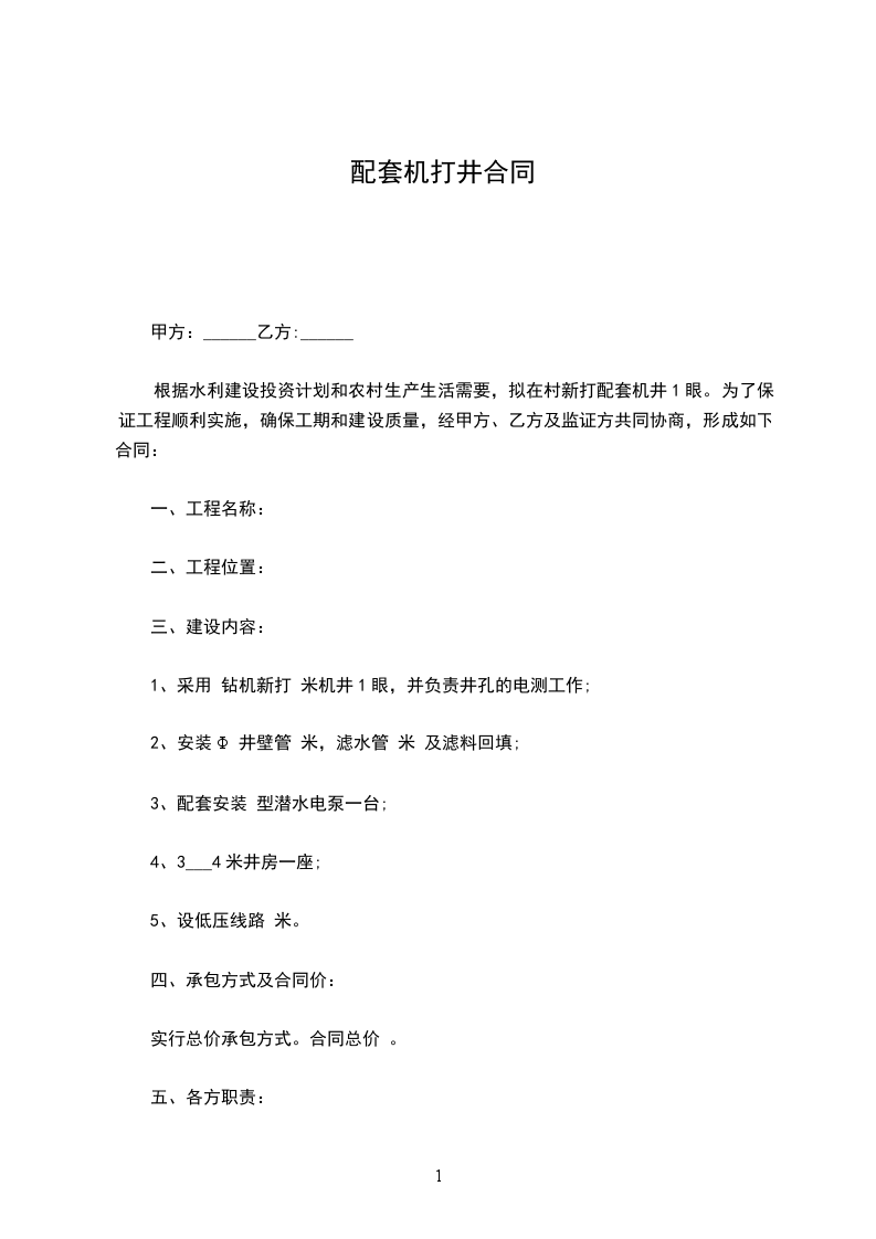 根据水利建设投资计划和农村生产生活需要,拟在村新打配套机井1眼。为了保证工程顺利实施,确保工期和建设质量,经甲方、乙方及监证方共同协商,形成如下合同:
