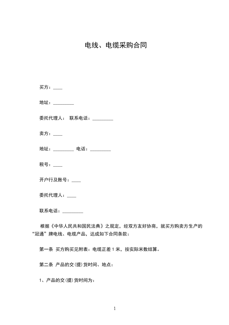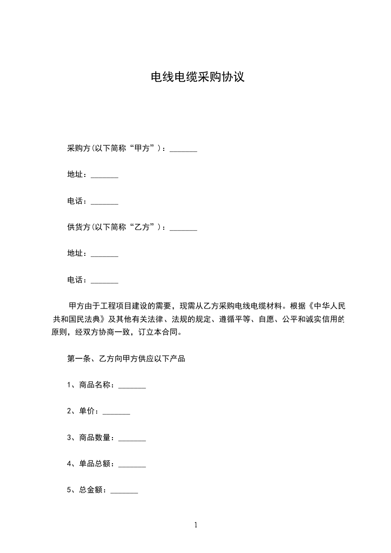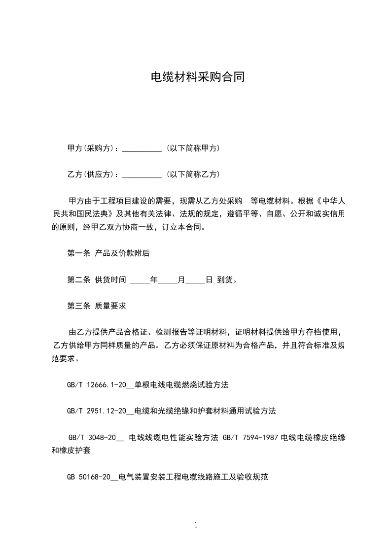 甲方由 工程项目建设的需要,现需从乙方采购电线电缆材料。根据《中华人民共和国民法典》及其他有关法律、法规的规定、遵循平等、自愿、公平和诚实信用的原则,经双方协商一致,订立本合同。