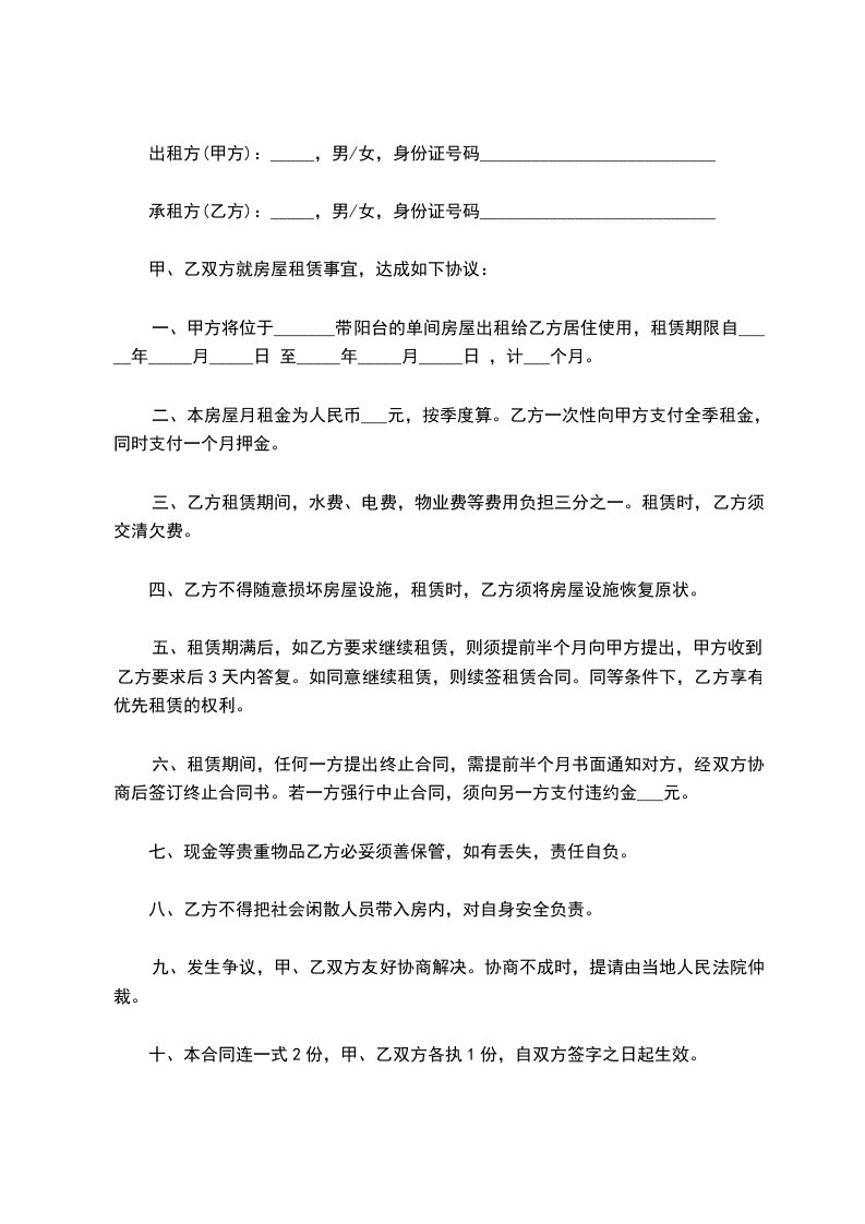 2、乙方无权转租、转借、转卖该房屋,及屋内家具家电,不得擅自改动房屋结构,爱护屋内设施,如有人为原因造成破损丢失应维修完好,否则照价赔偿。并做好防火,防盗,防漏水,和阳台摆放、花盆的安全工作,若造成损失责任自负。