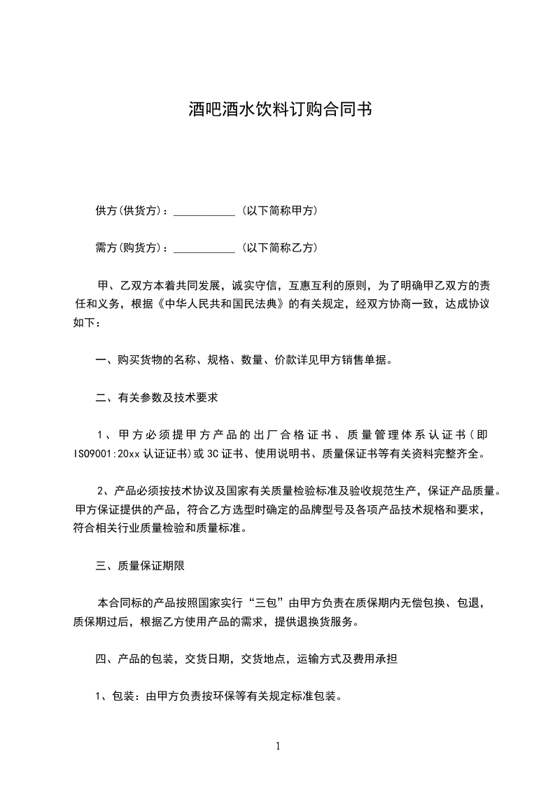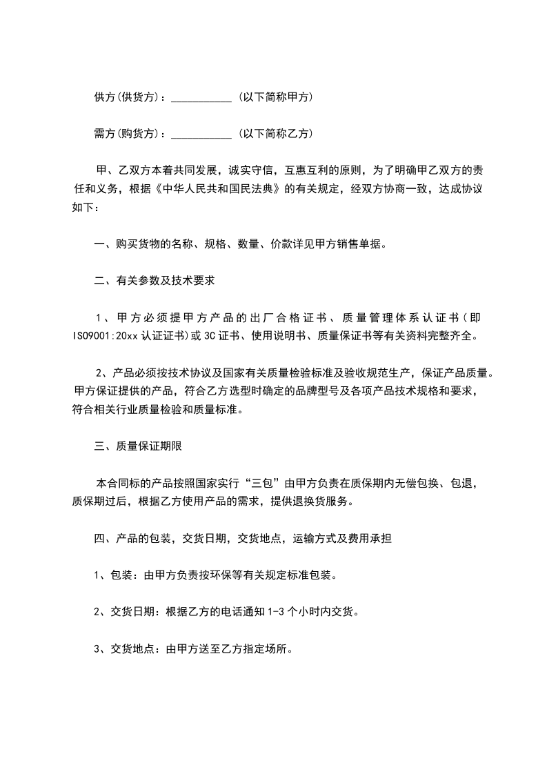需方(购货方):___________ (以下简称乙方)