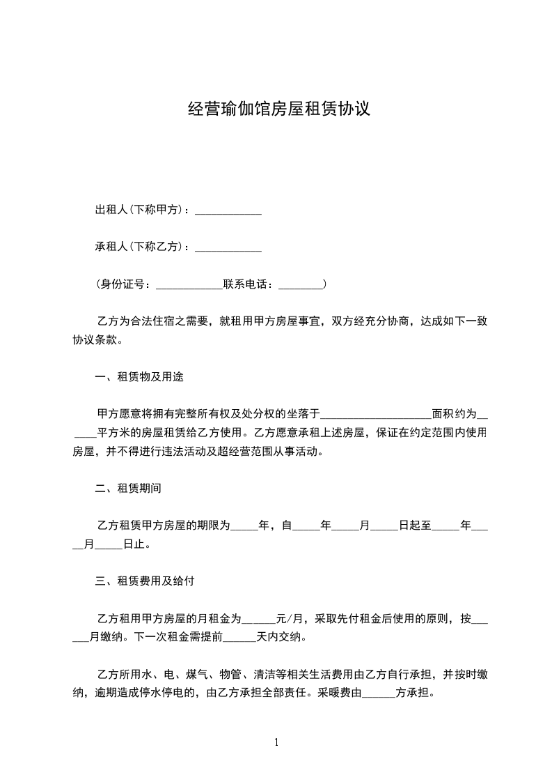 第二条合股经营项目和范围工商营业执照登记的项目和范围;共同经营艾柳瑜伽品牌,法人代表: